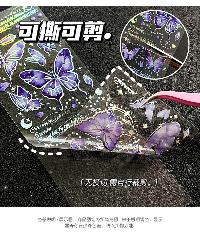 레이저 도금 양각 나비 스티커 애완 동물 빛 복고풍 3 차원 DIY 구 카드 저널 장식 소재 스티커 붙여 넣기