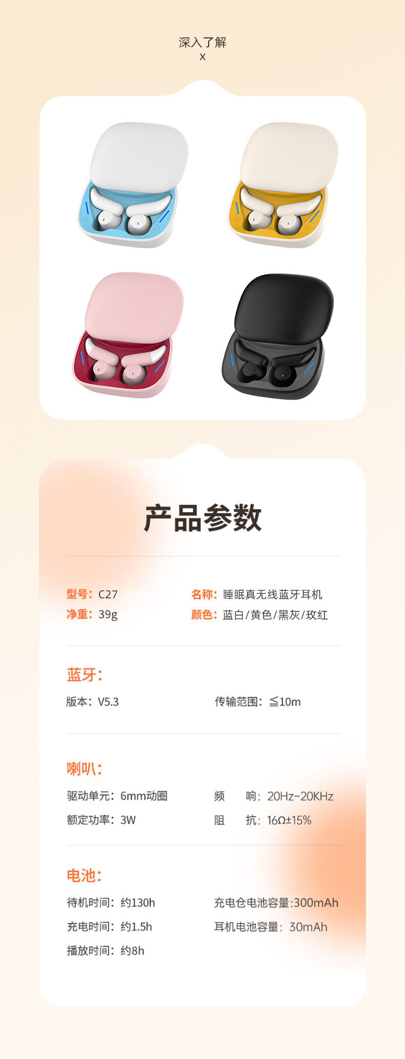캐리 C27 새로운 수면 블루투스 헤드셋 미니 휴대용 슬라이드 빈 사이드 수면 편안한 착용 소음 감소 헤드셋스토어 가기