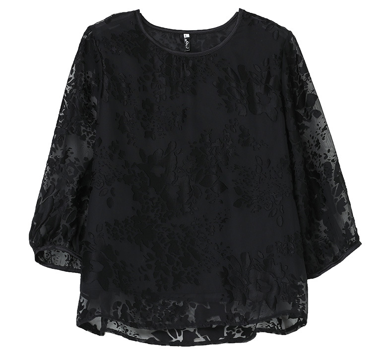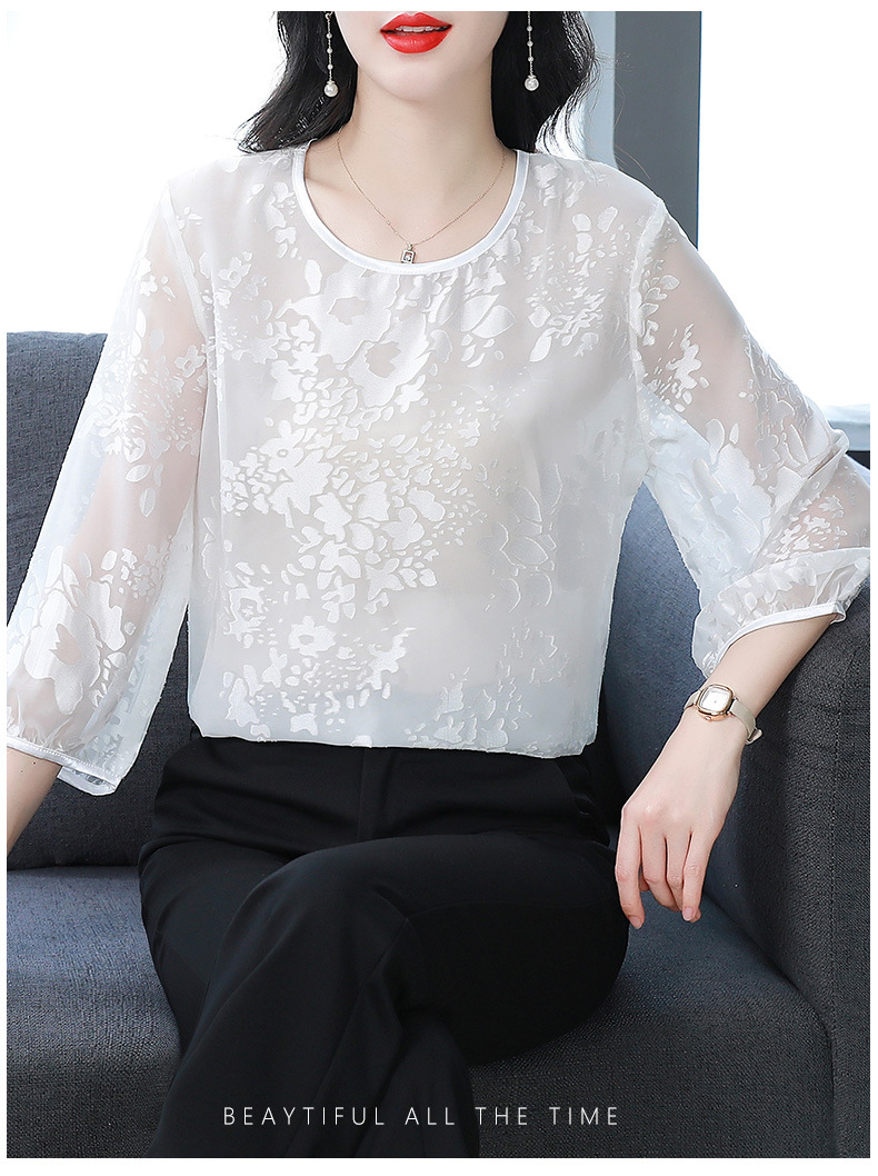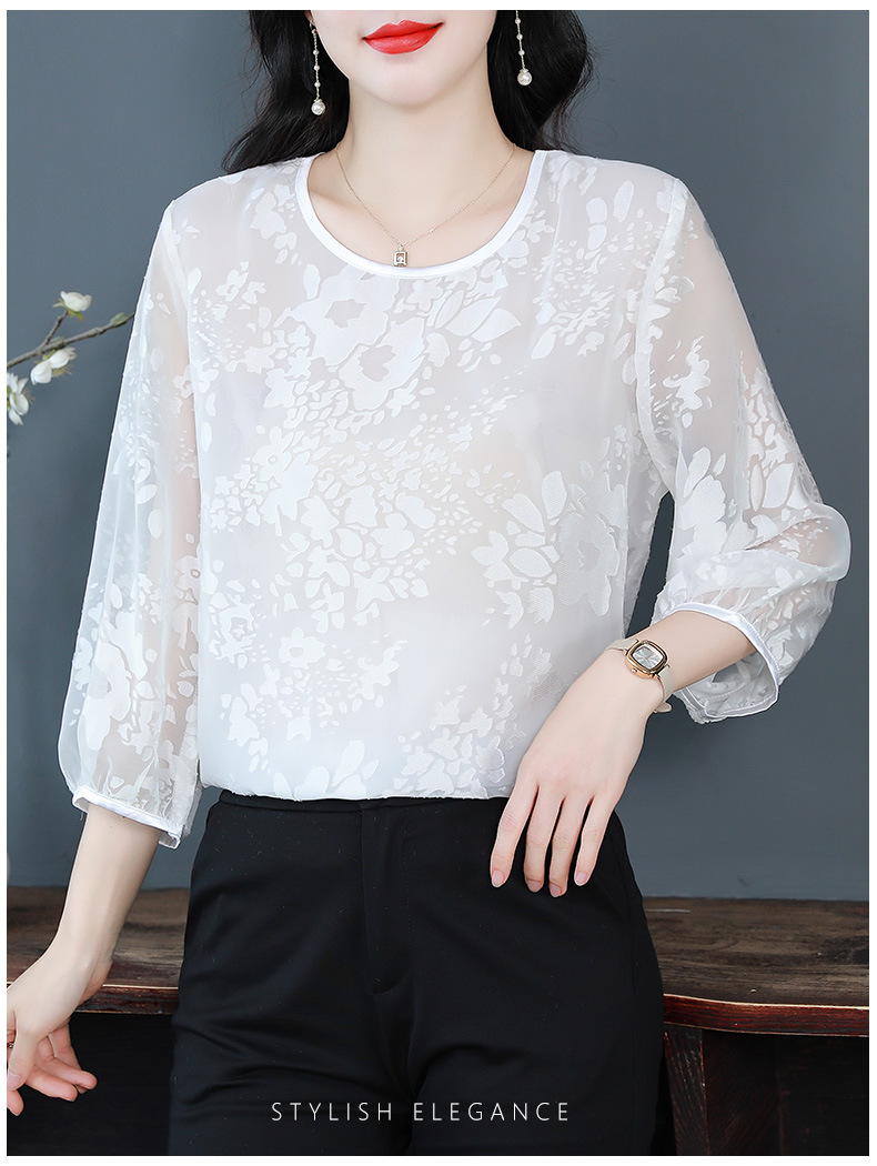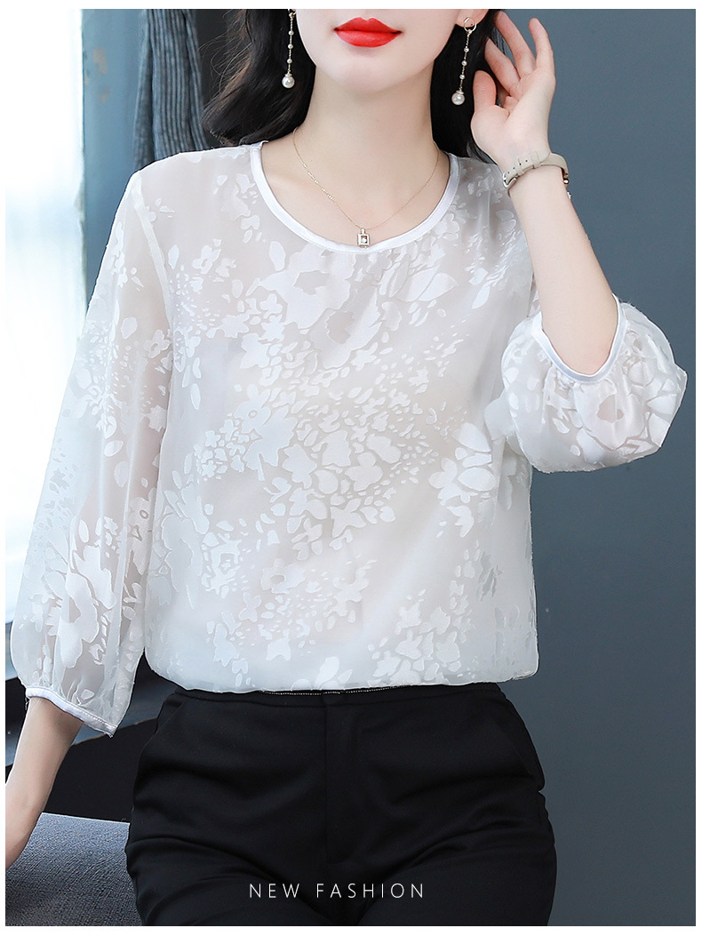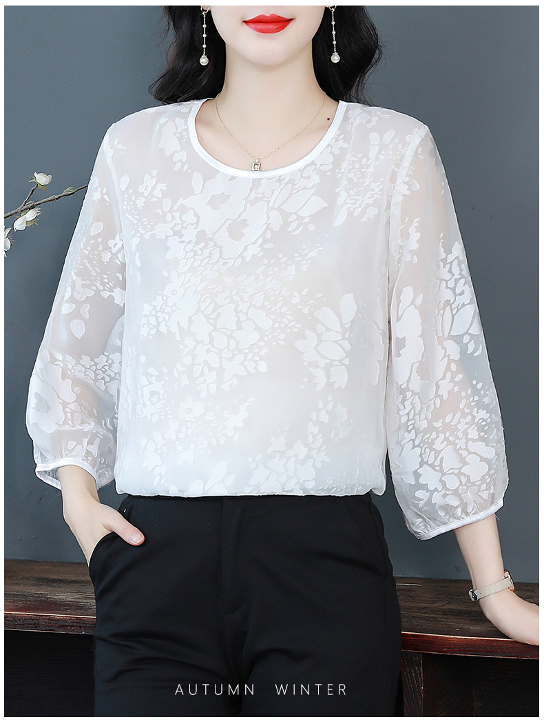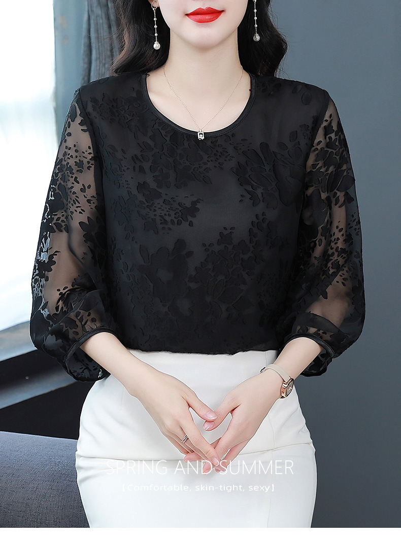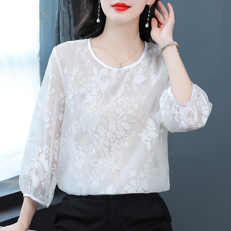 2025 새로운 헤비급 레이스 쉬폰 셔츠 여성 풀오버 베이스 디자인 라운드 넥 틈새 다용도 외국 스타일 트렌드스토어 가기