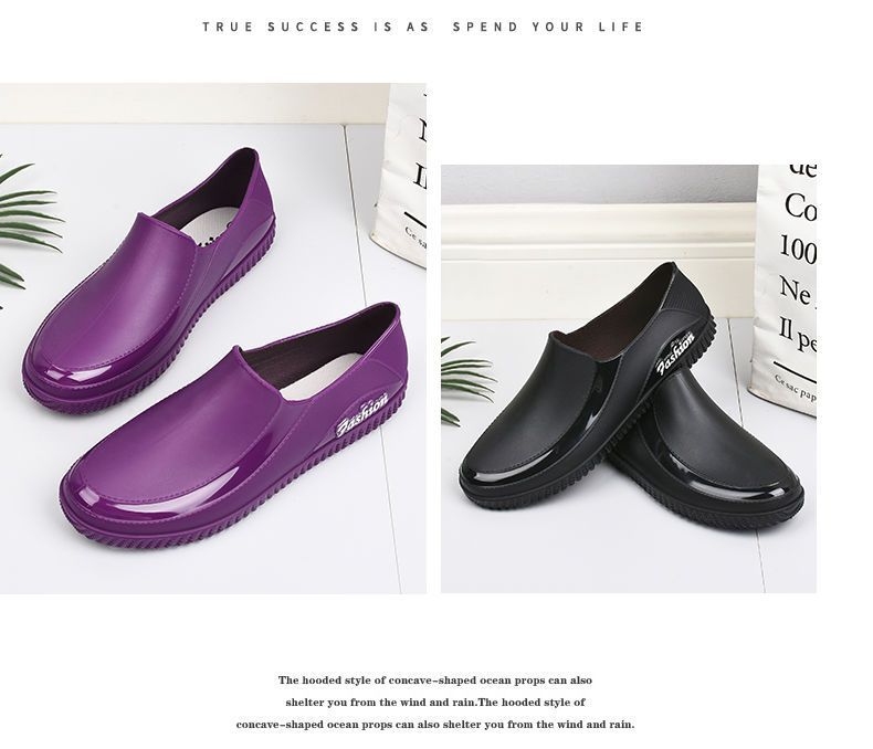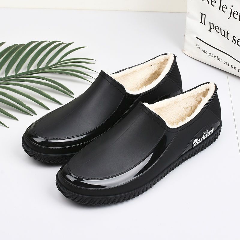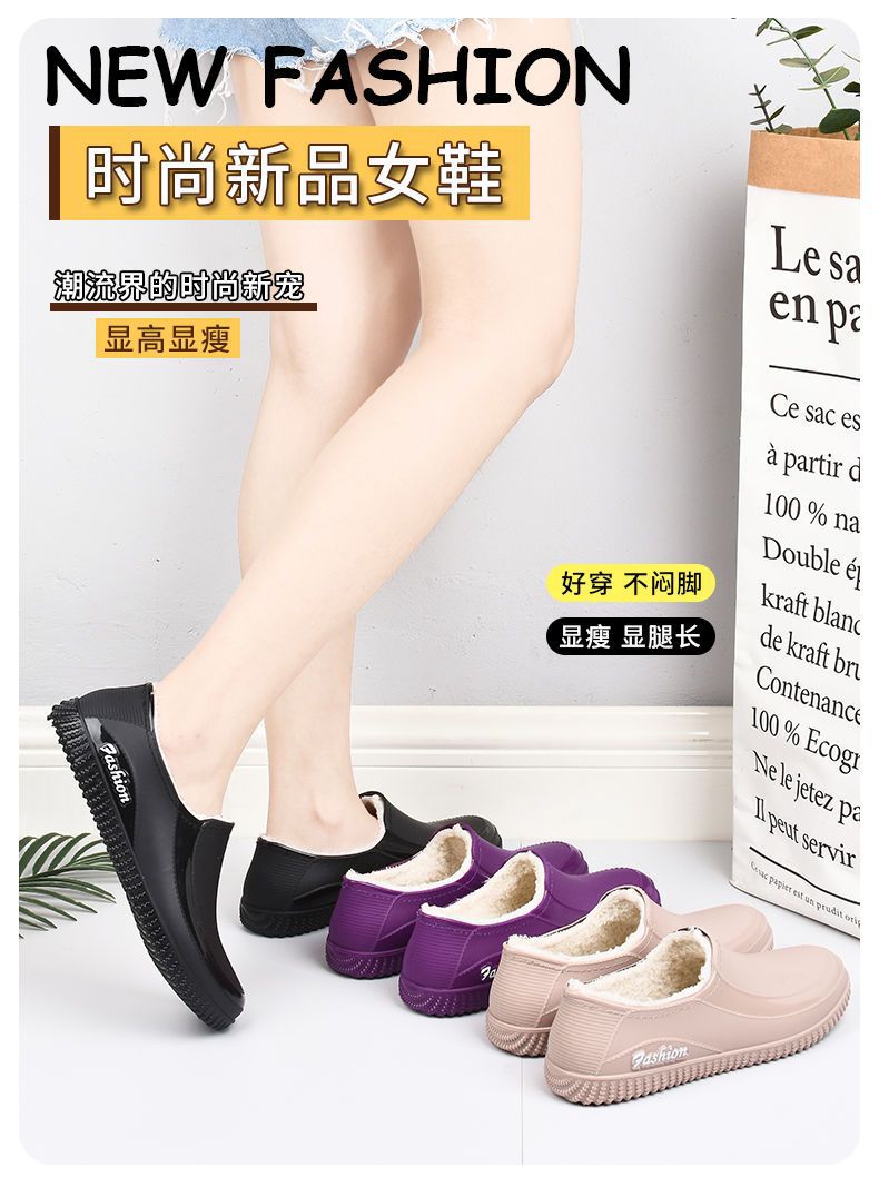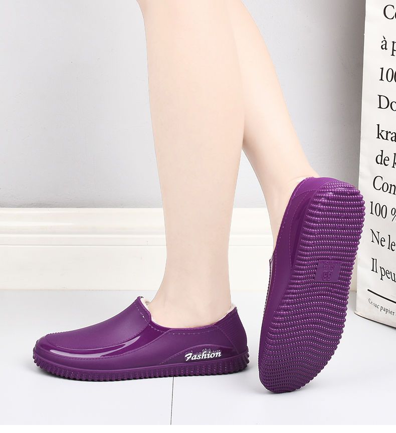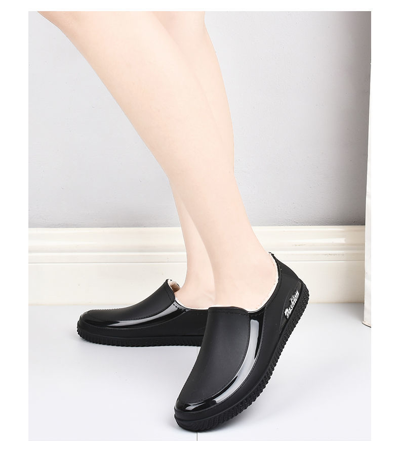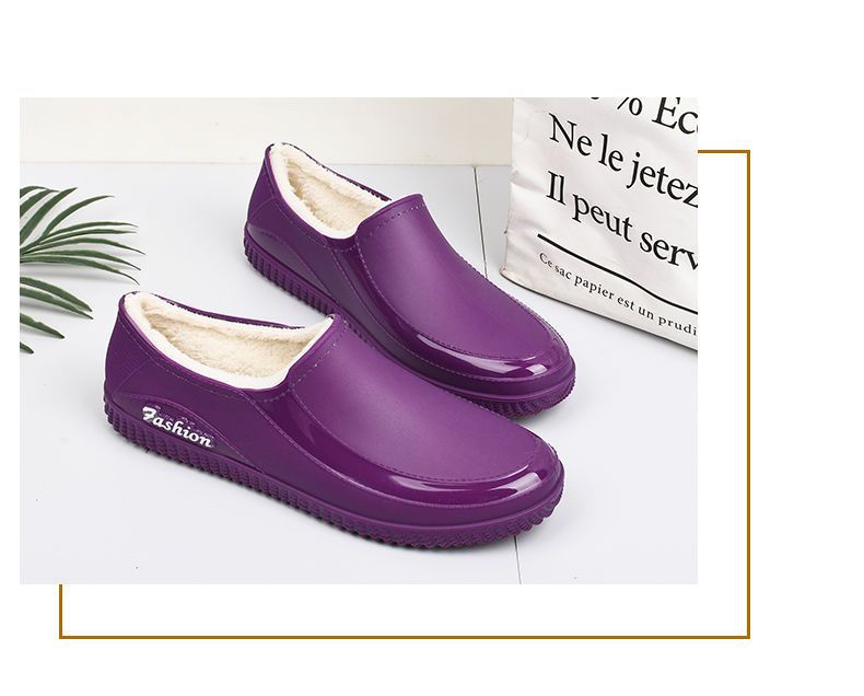 여성용 로우 탑 짧은 로우 컷 레인 부츠 방수 통합 고무 신발 고정 플러시 미끄럼 방지 유행 작업 장화스토어 가기