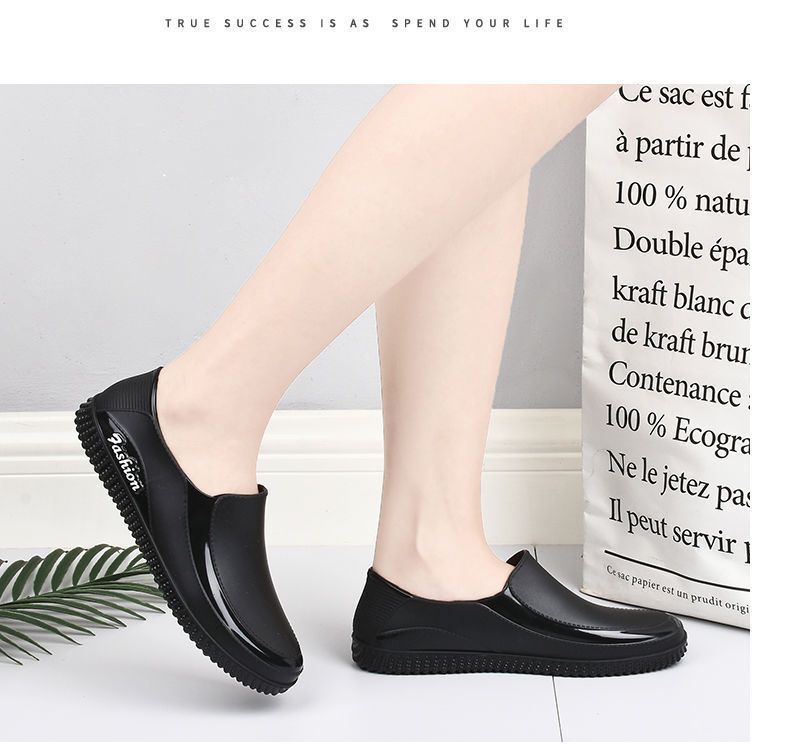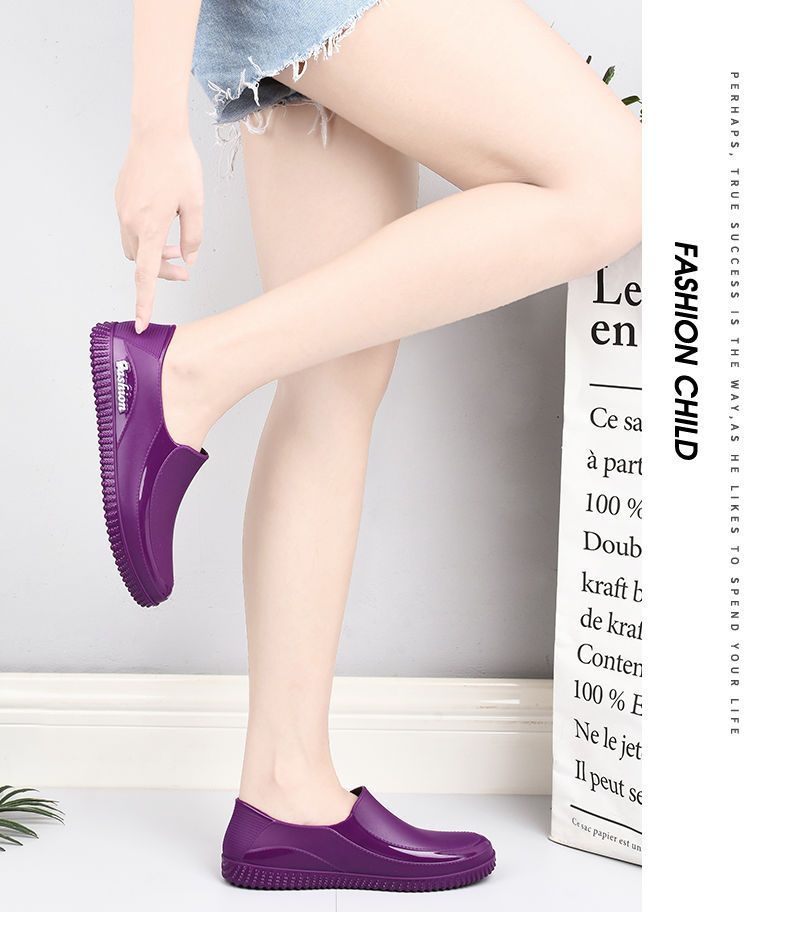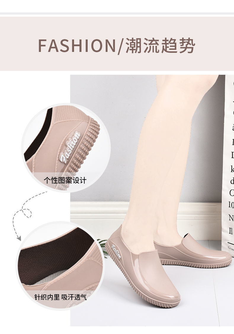 여성용 로우 탑 짧은 로우 컷 레인 부츠 방수 통합 고무 신발 고정 플러시 미끄럼 방지 유행 작업 장화