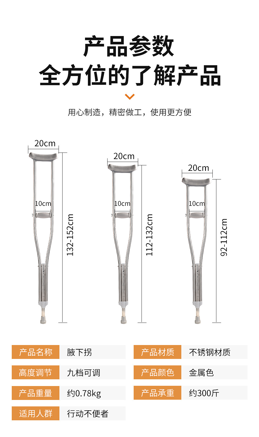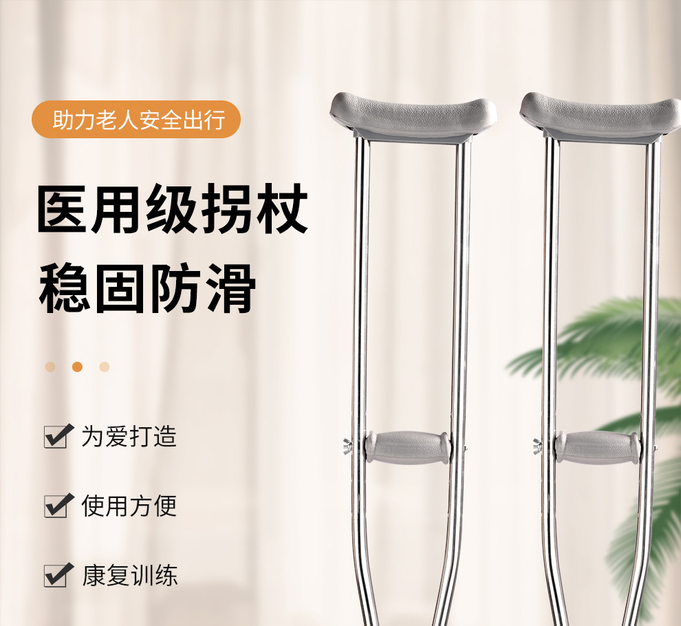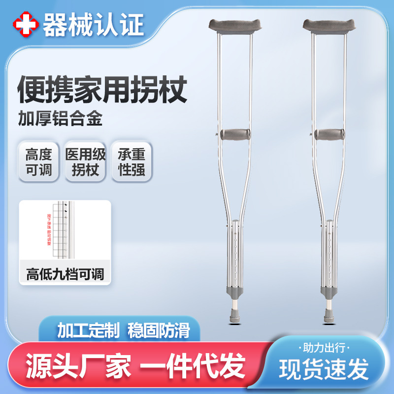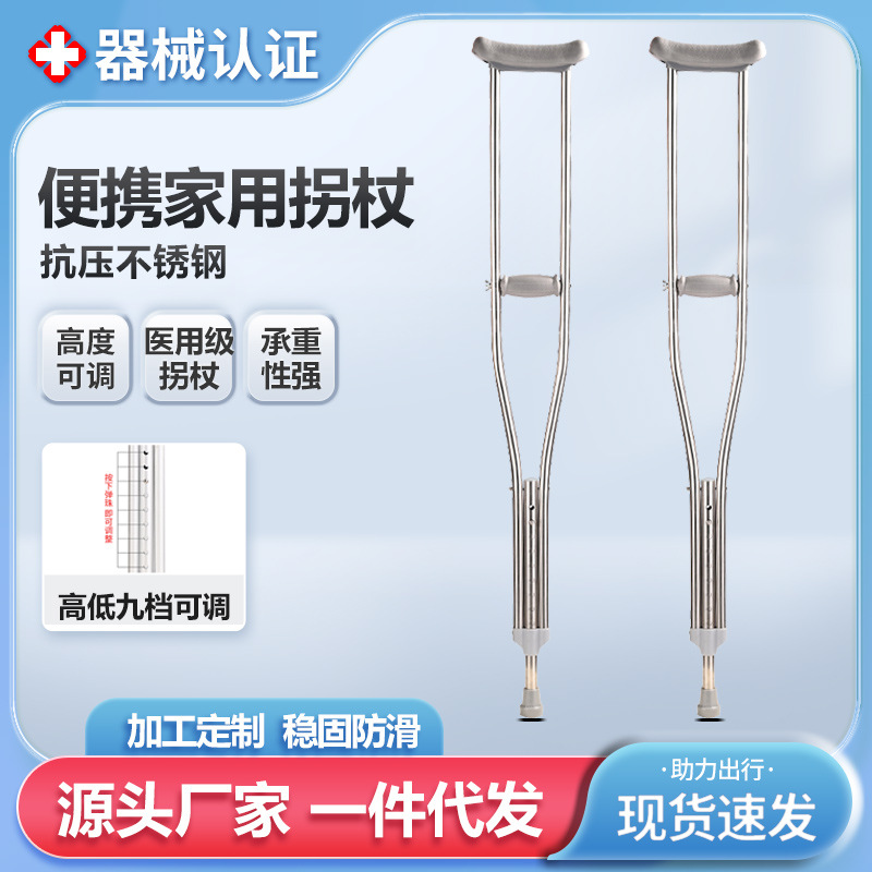 공장 도매 스테인레스 스틸 목발 겨드랑이 이중 목발 알루미늄 합금 겨드랑이 목발 재활 보행 보조 목발 두 배 겨드랑이스토어 가기