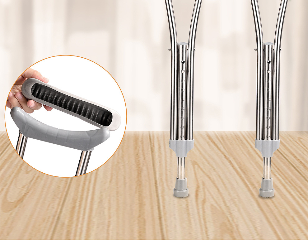 공장 도매 스테인레스 스틸 목발 겨드랑이 이중 목발 알루미늄 합금 겨드랑이 목발 재활 보행 보조 목발 두 배 겨드랑이