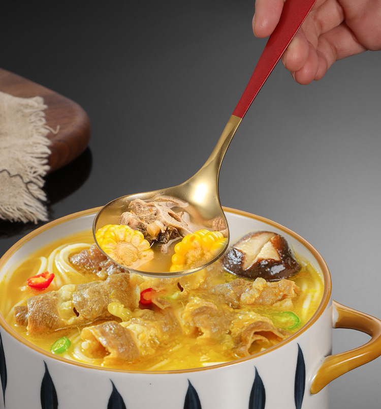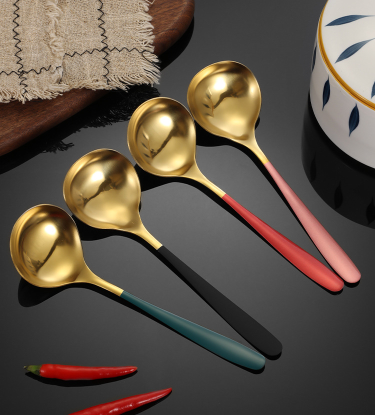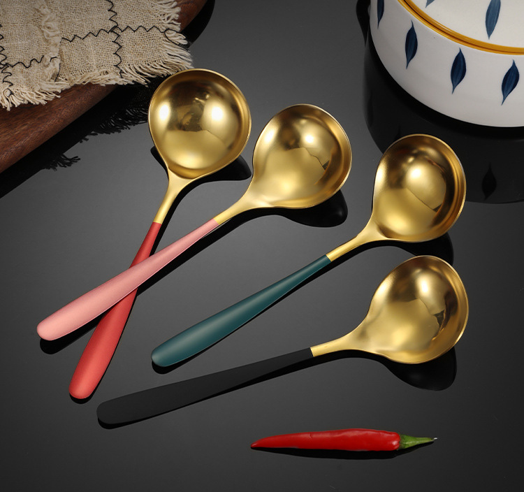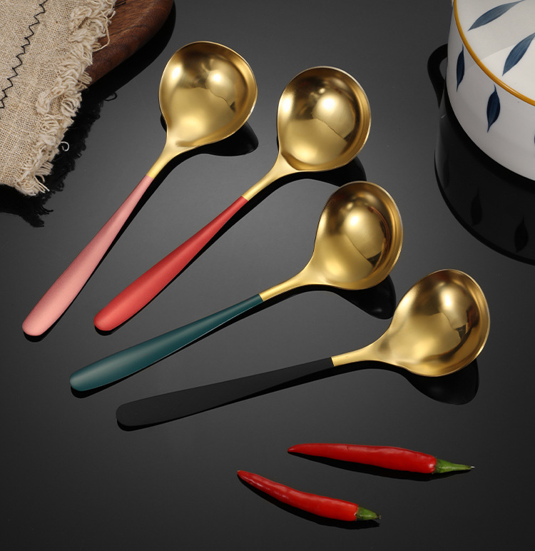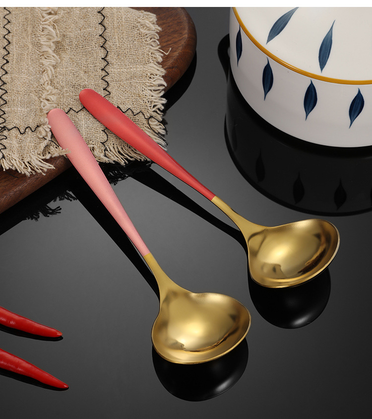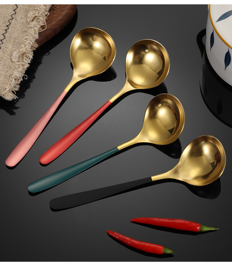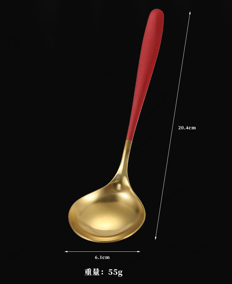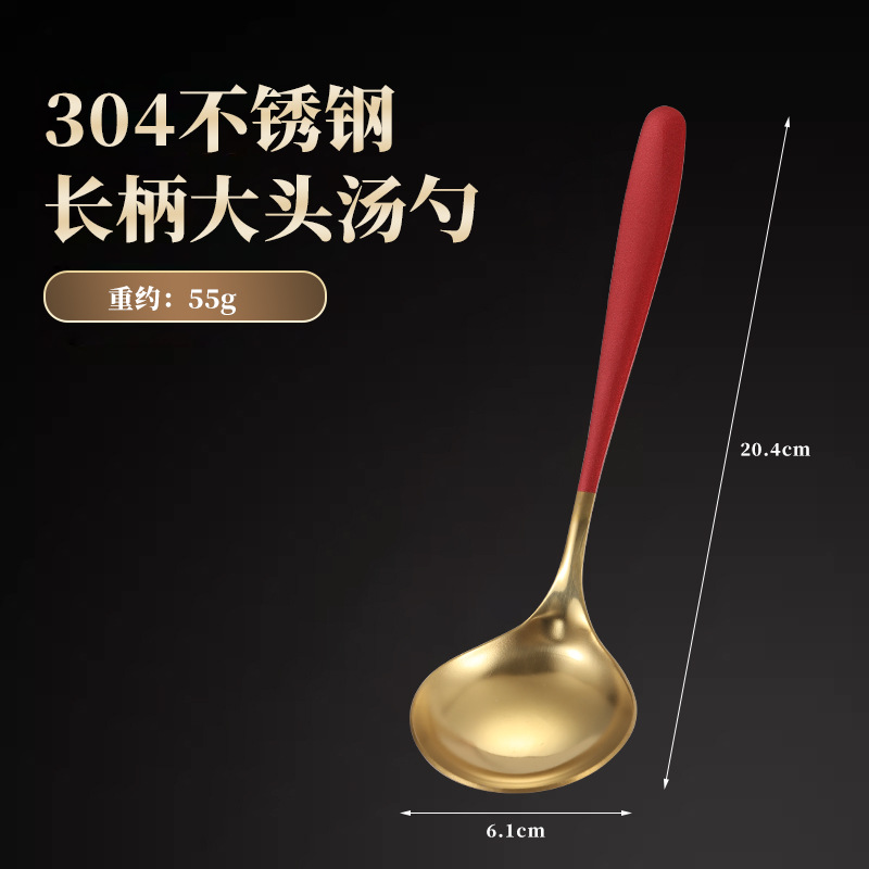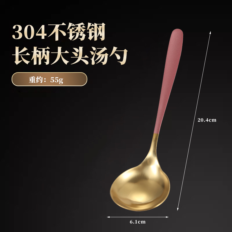 • 304 강철 긴 손잡이 큰 머리 수프 숟가락 (레드 골드)