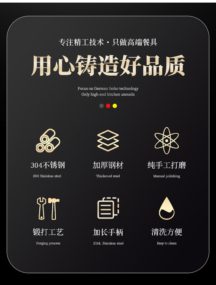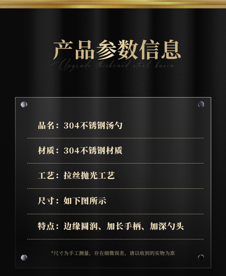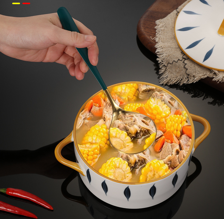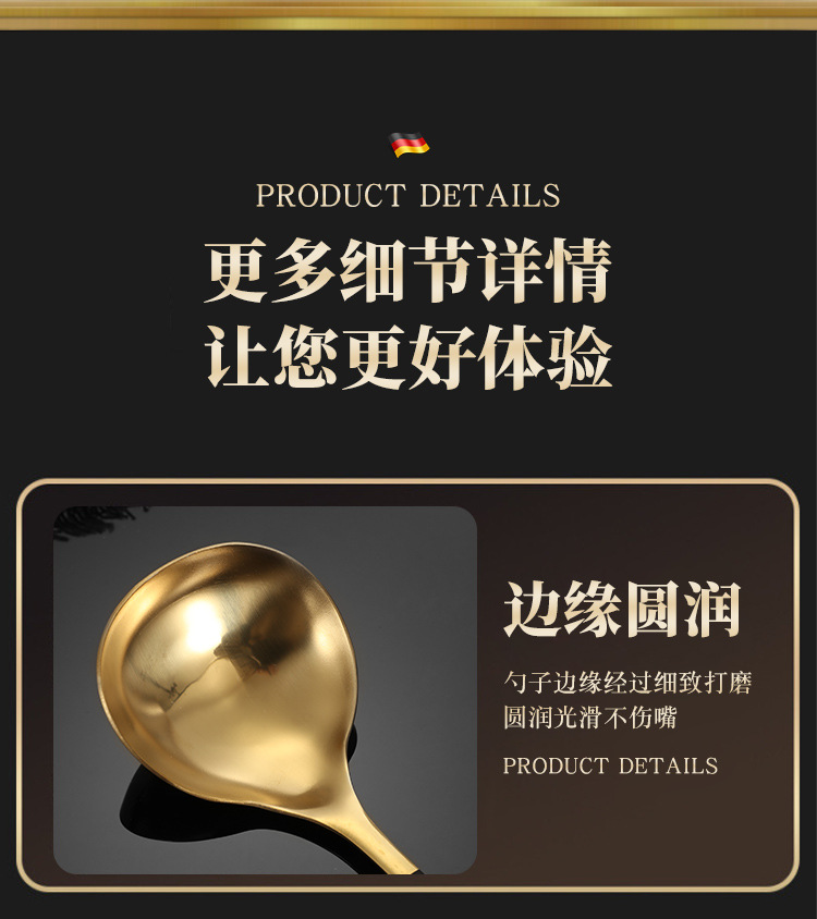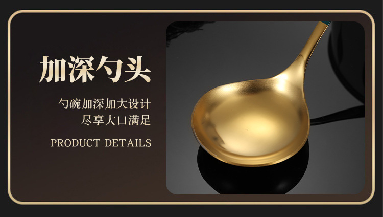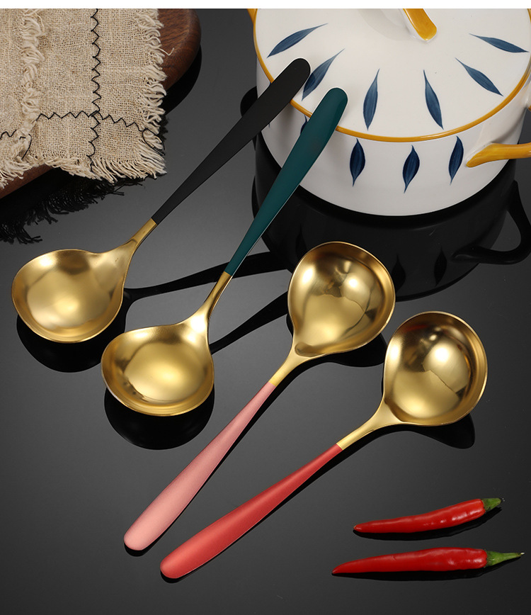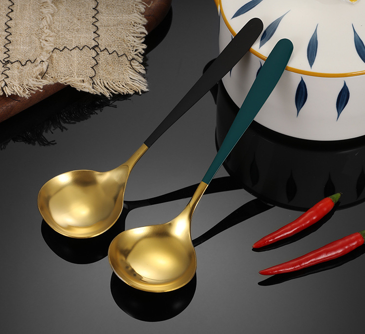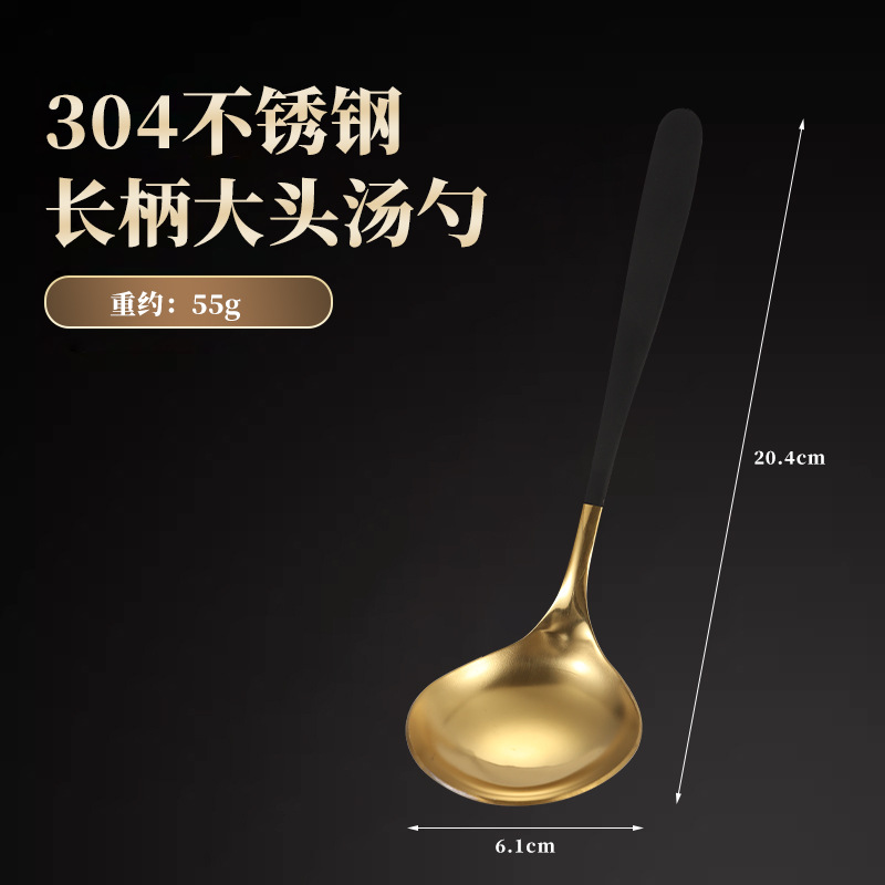 • 304 강철 긴 손잡이 큰 머리 수프 숟가락 (블랙 골드)