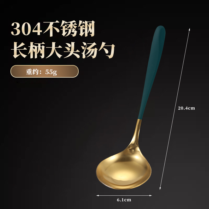 • 304 강철 긴 손잡이 큰 머리 수프 숟가락 (그린 골드)
