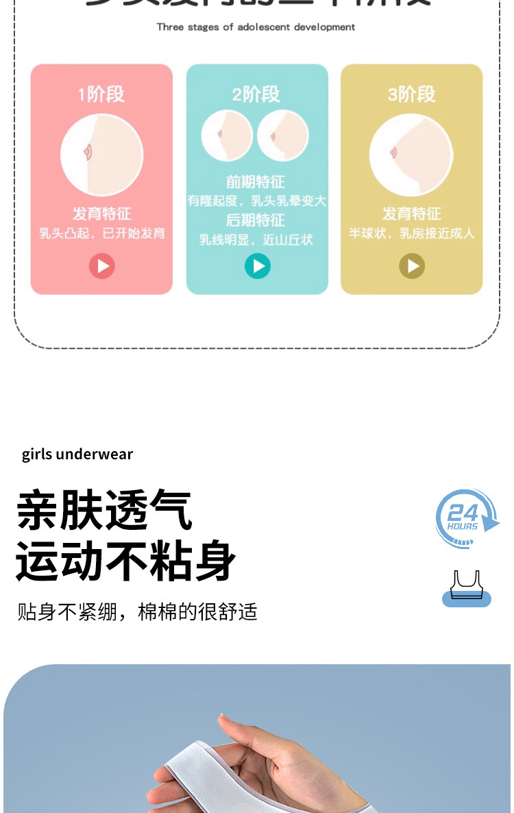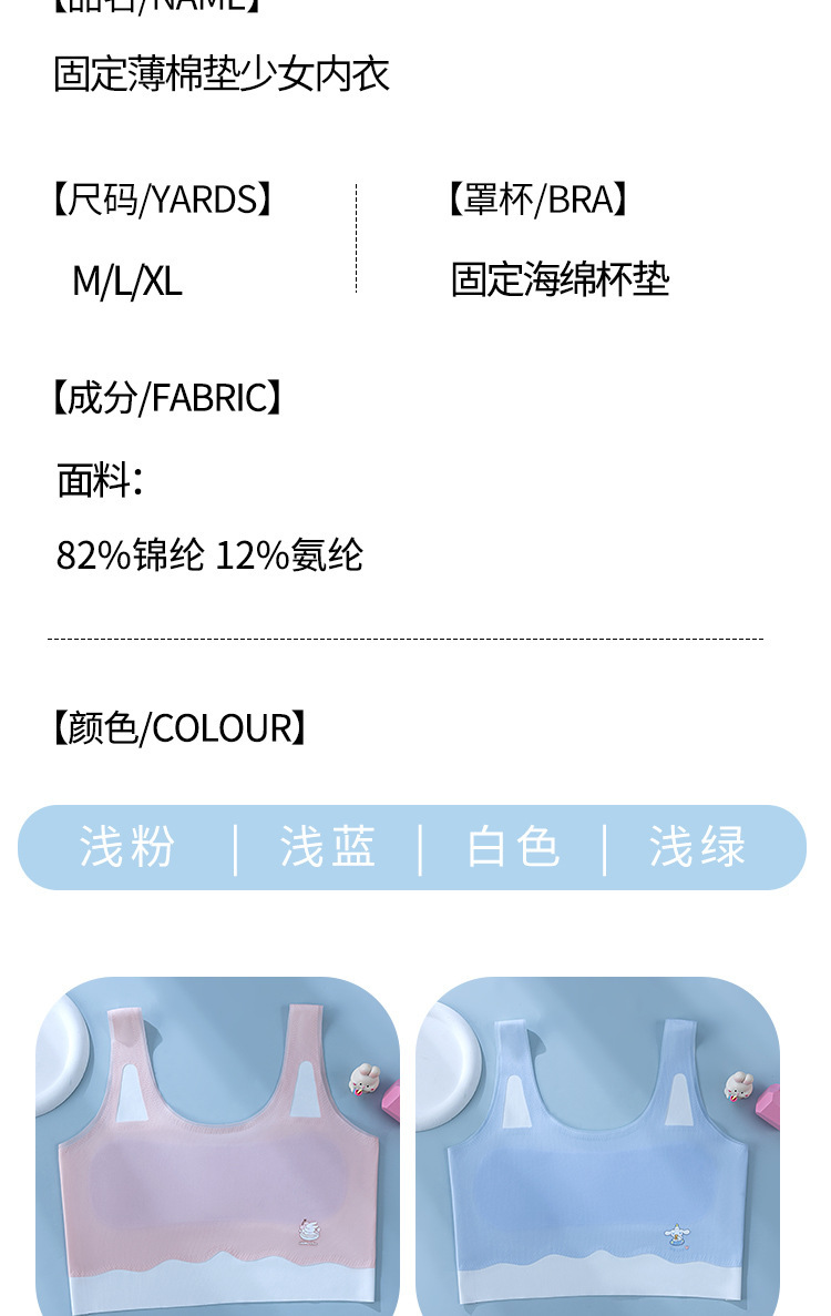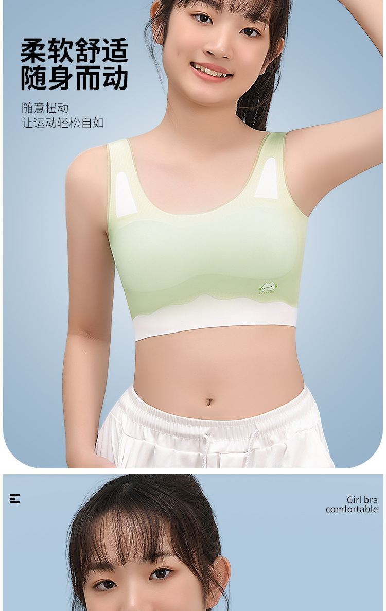 소녀 속옷 개발 기간 무선 어린이 브래지어 소녀 조끼 중대형 어린이와 학생을위한 얇은 원활한 브래지어