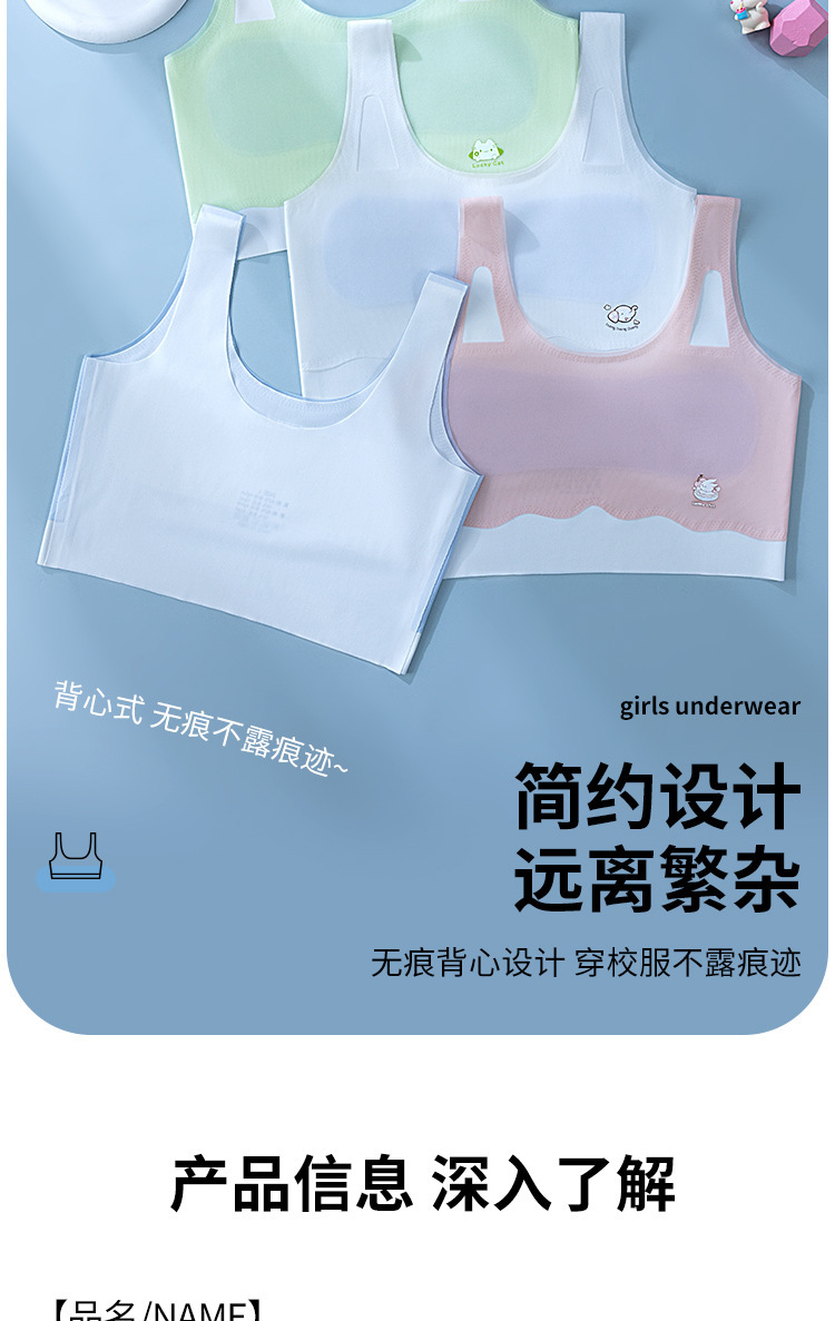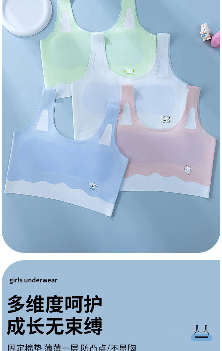 소녀 속옷 개발 기간 무선 어린이 브래지어 소녀 조끼 중대형 어린이와 학생을위한 얇은 원활한 브래지어스토어 가기