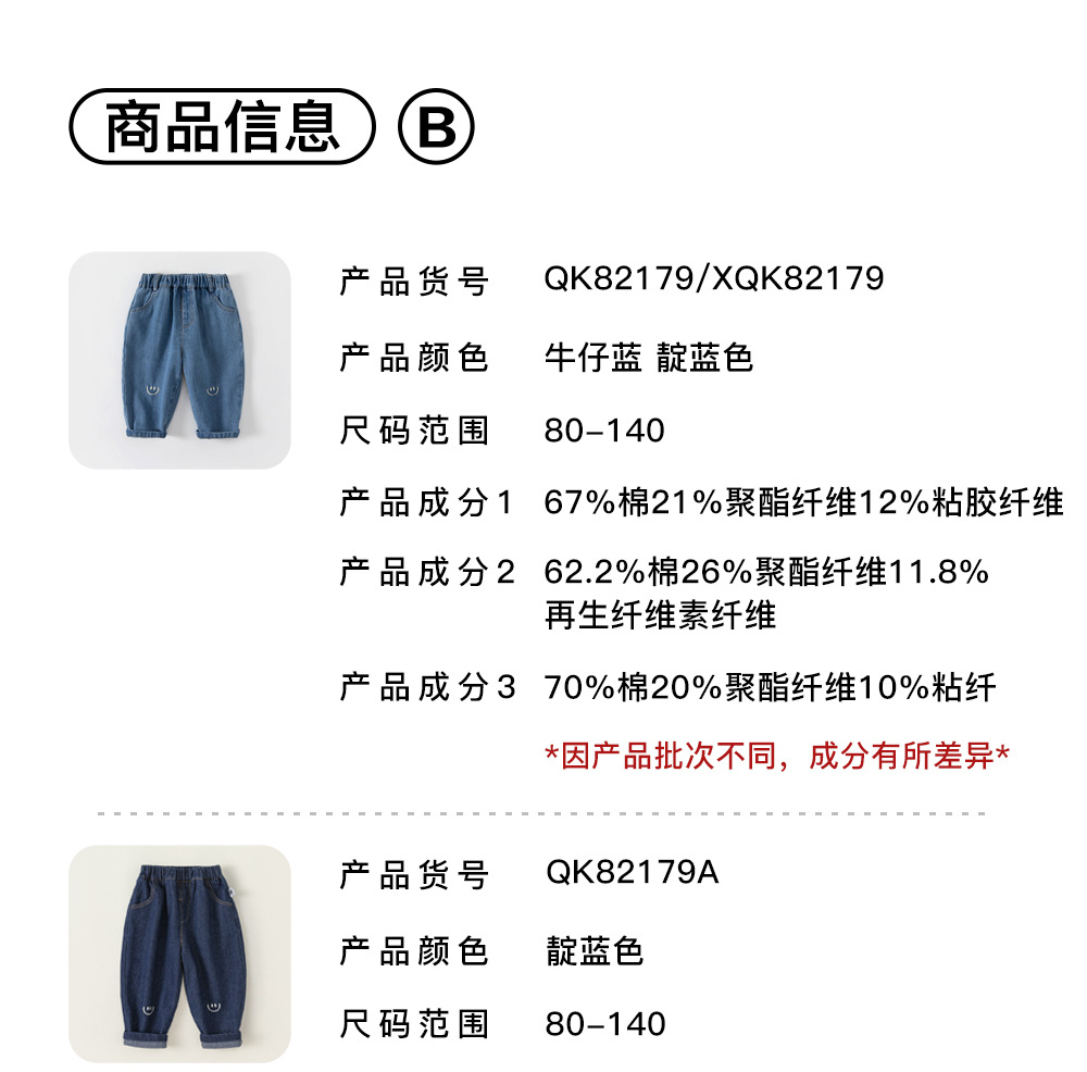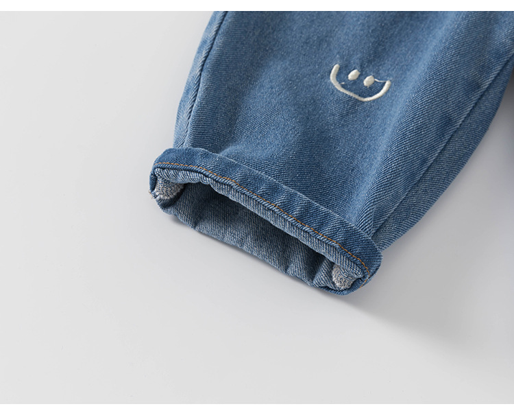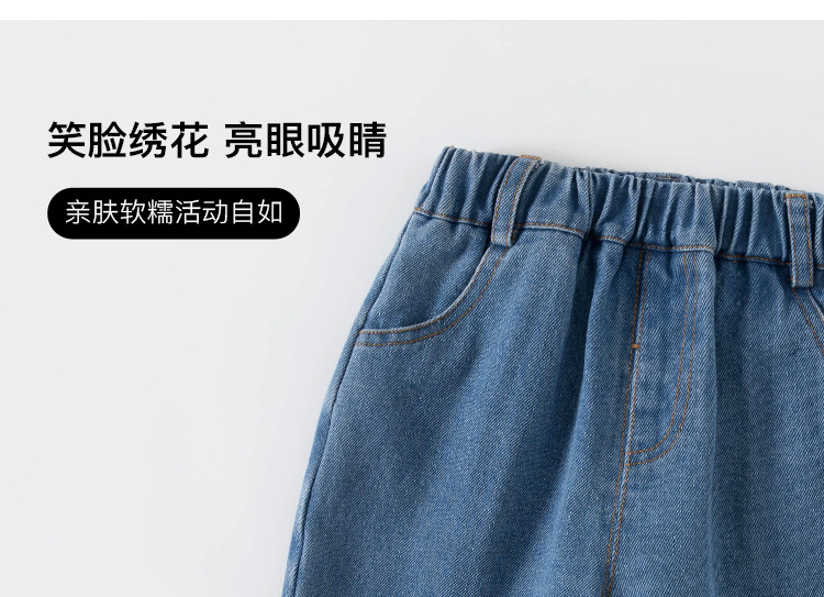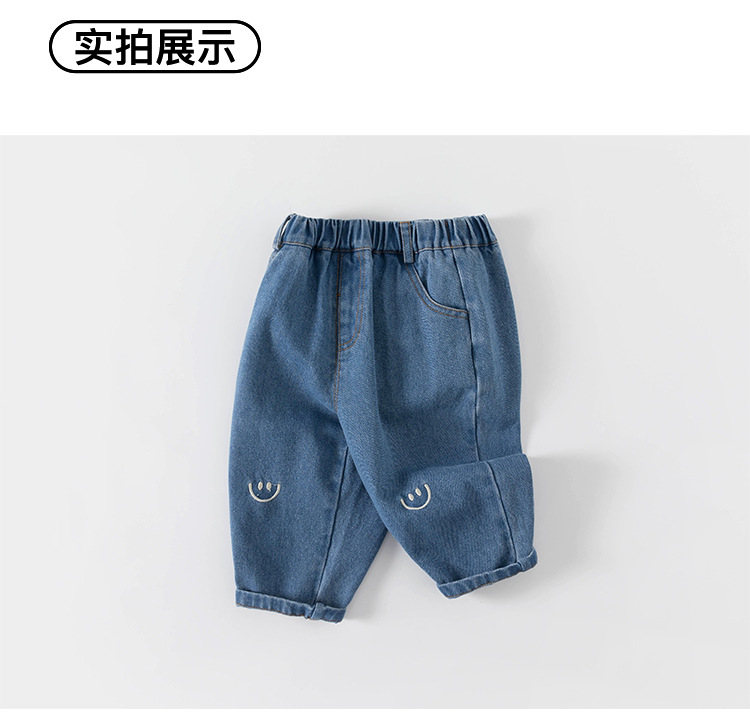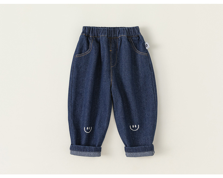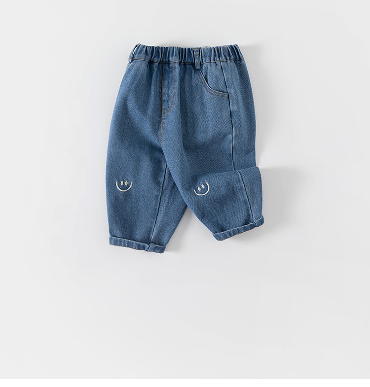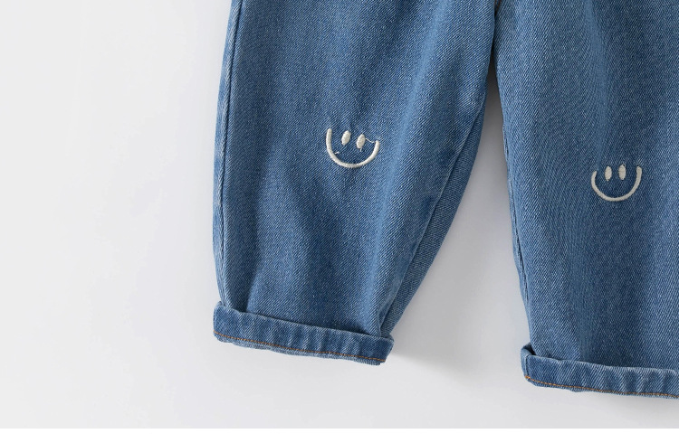 봄가을 남아용 바지, 여아용 스트레이트 팬츠, 스마일 자수 긴바지, 유아용 청바지, 아동용 바지스토어 가기