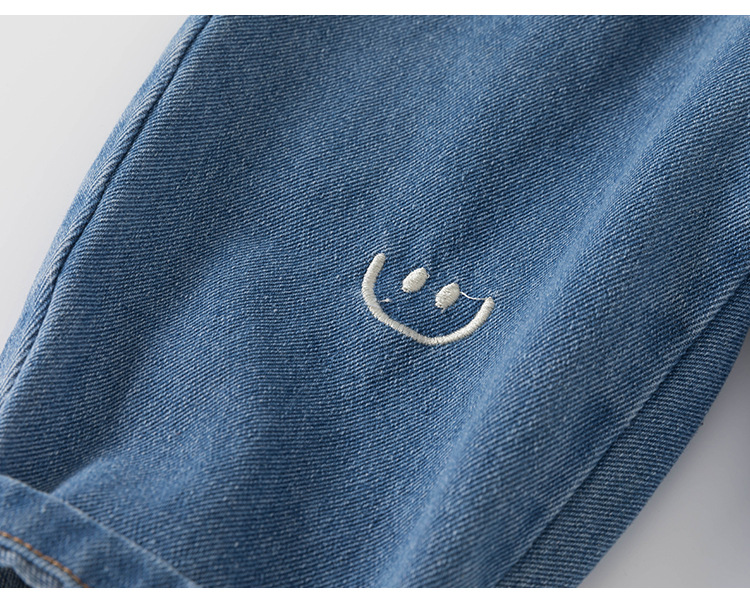 봄가을 남아용 바지, 여아용 스트레이트 팬츠, 스마일 자수 긴바지, 유아용 청바지, 아동용 바지