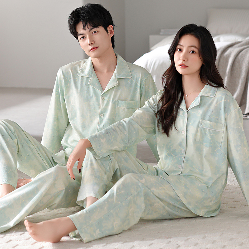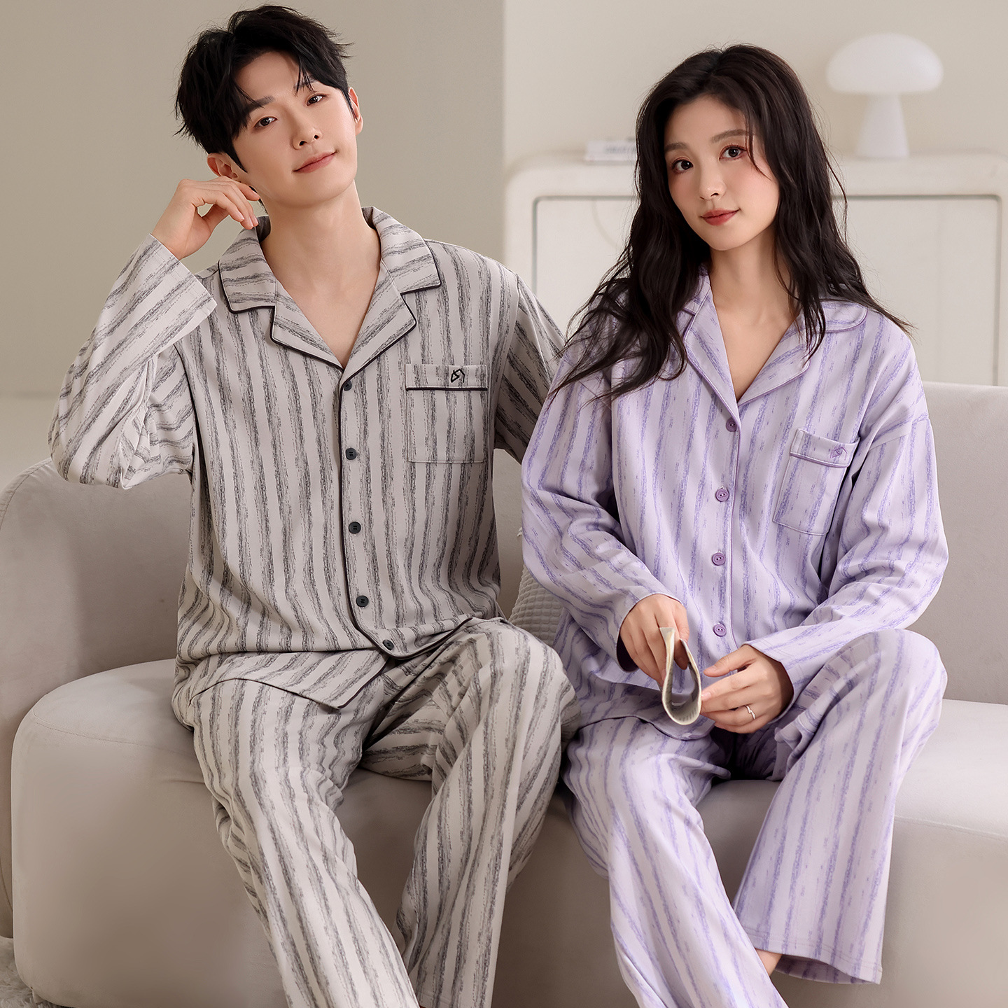 봄과 가을 180g 6040 면 커플 잠옷 봄 긴팔 바지 정장 카디건 옷깃은 집 밖에서 입을 수 있습니다스토어 가기