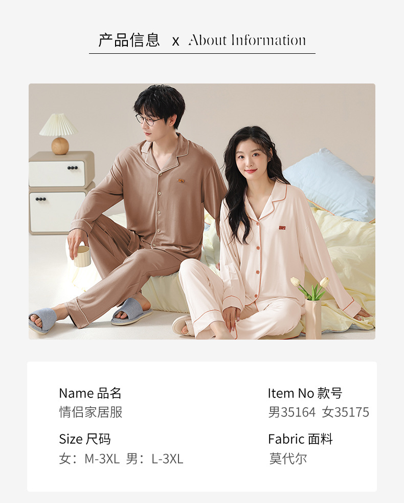 모달 커플 잠옷 여성의 가을 모달 솔리드 컬러 느슨한 캐주얼 카디건 봄과 가을 옷깃 홈 옷 세트