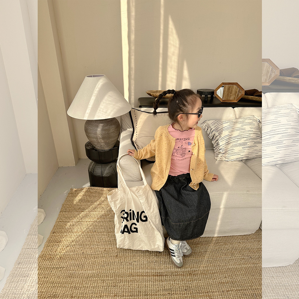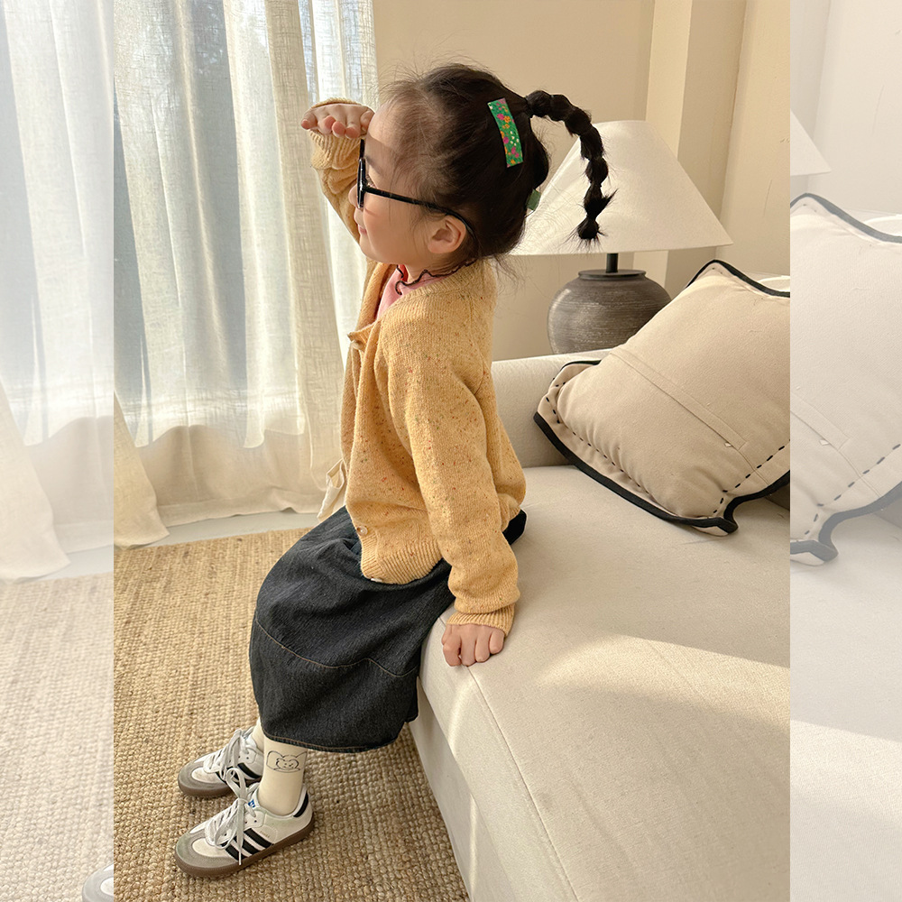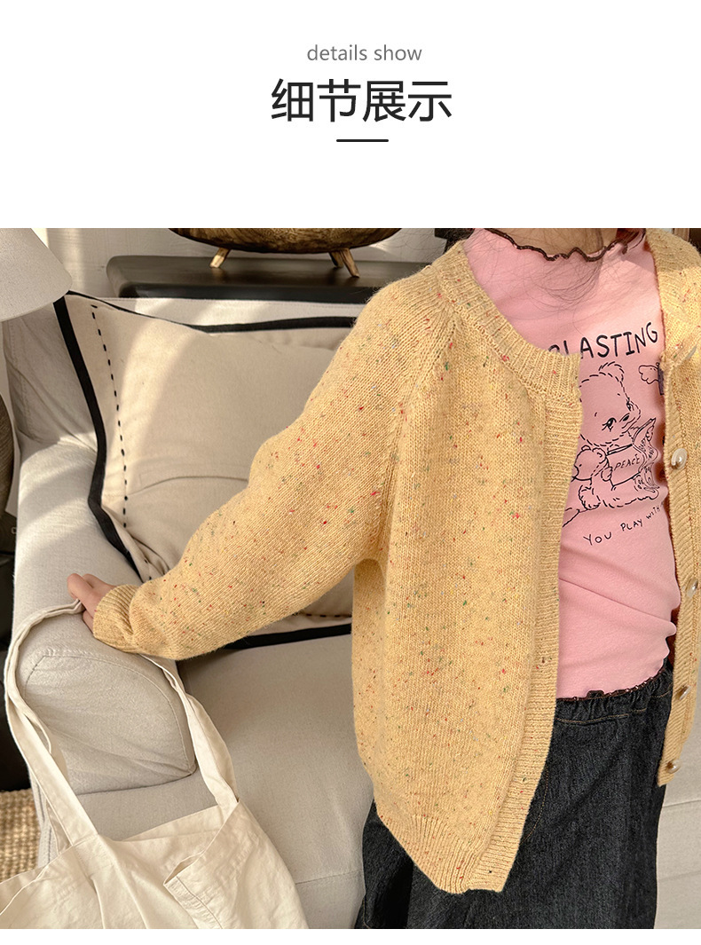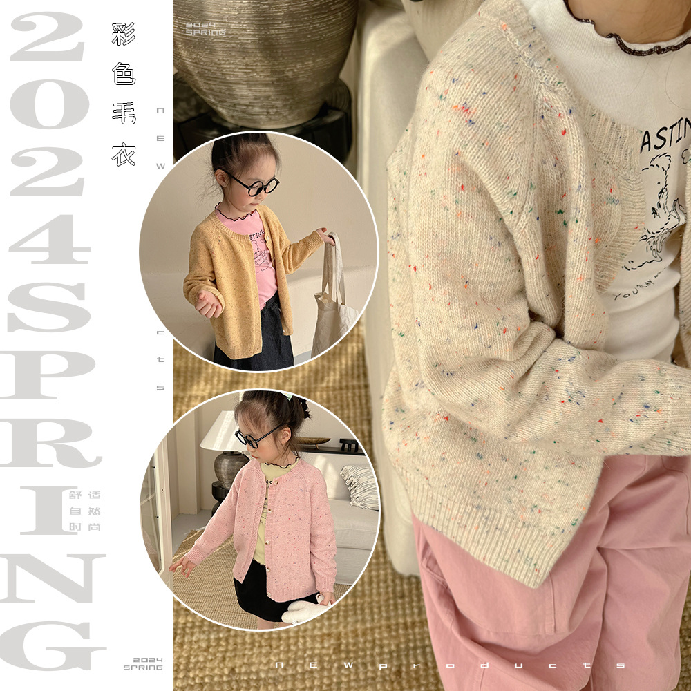 Zuoxiaoran 아동복 2024 봄, 가을 새로운 한국 스타일 소년과 소녀 컬러 도트 카디건 아동용 솔리드 컬러 울 스웨터 재킷스토어 가기