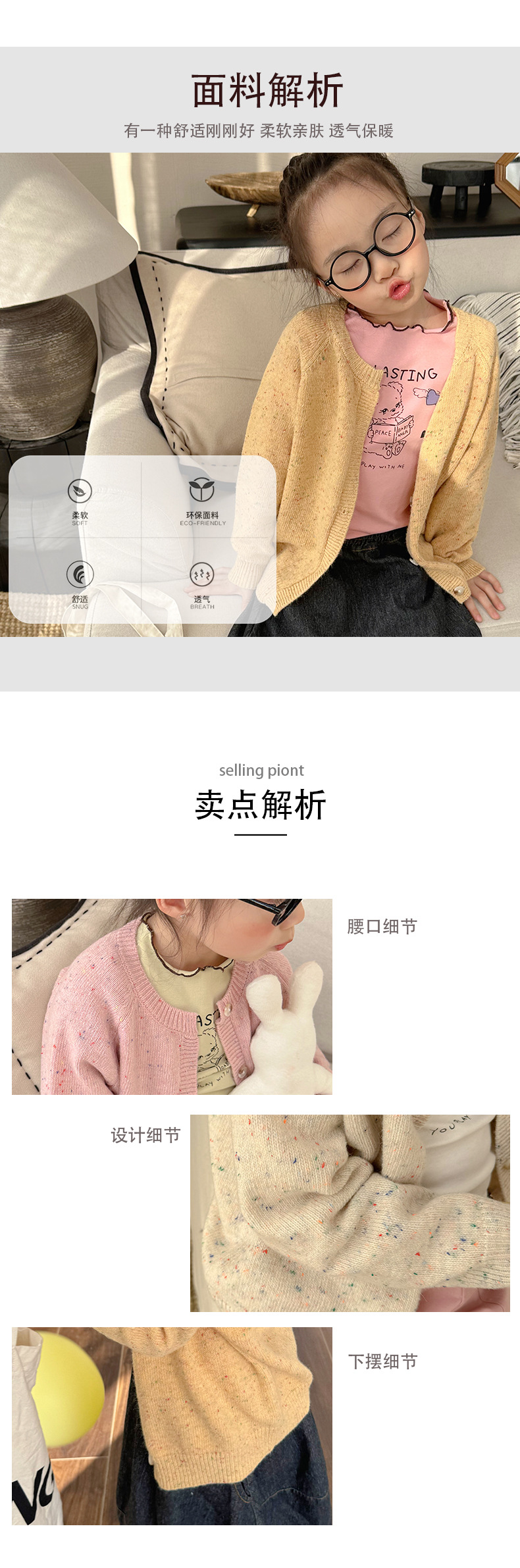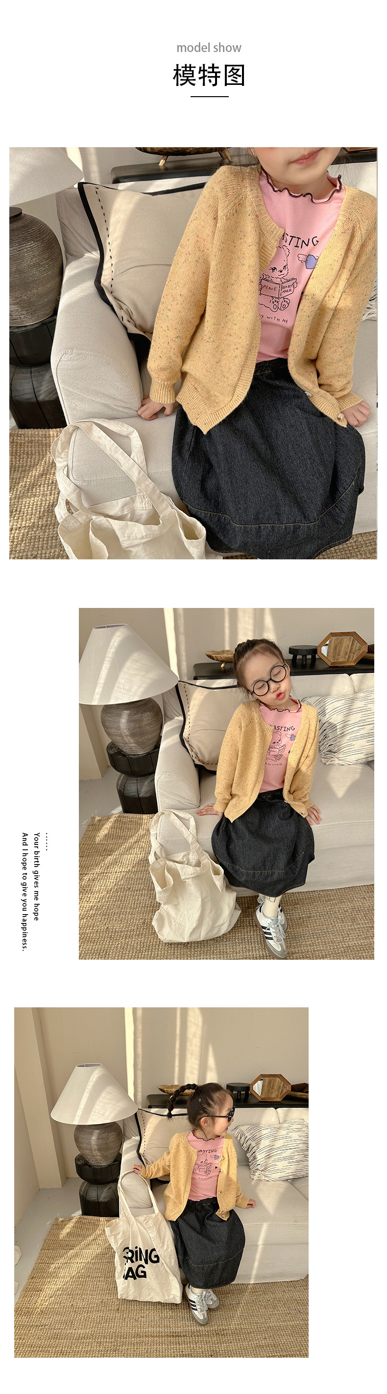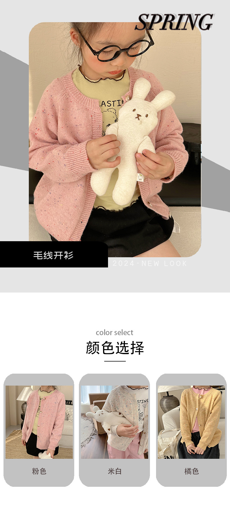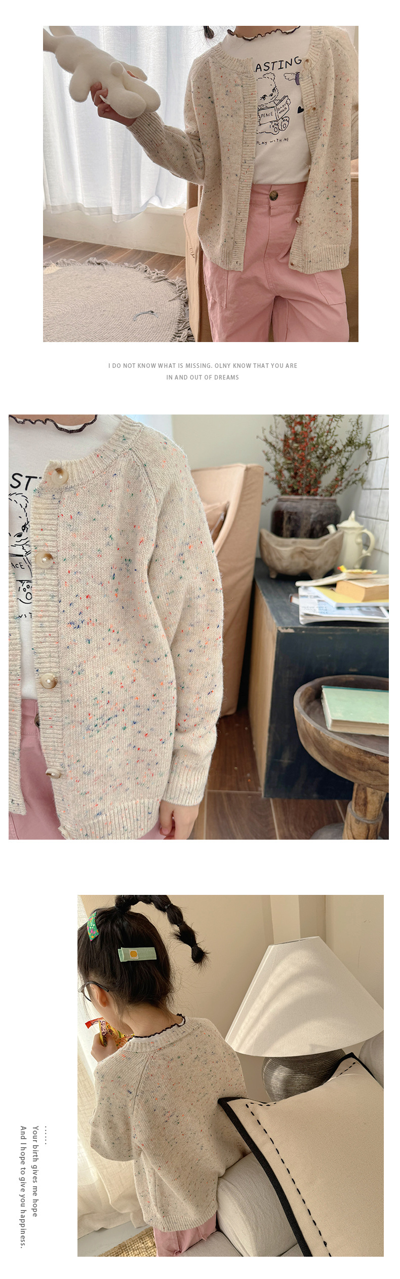 Zuoxiaoran 아동복 2024 봄, 가을 새로운 한국 스타일 소년과 소녀 컬러 도트 카디건 아동용 솔리드 컬러 울 스웨터 재킷스토어 가기