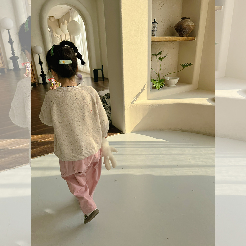 Zuoxiaoran 아동복 2024 봄, 가을 새로운 한국 스타일 소년과 소녀 컬러 도트 카디건 아동용 솔리드 컬러 울 스웨터 재킷