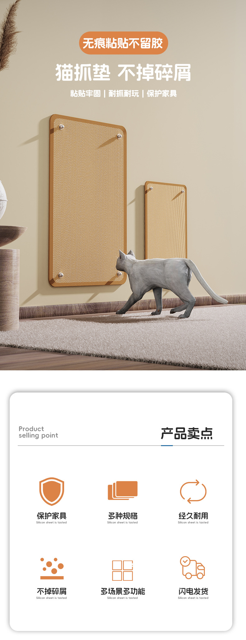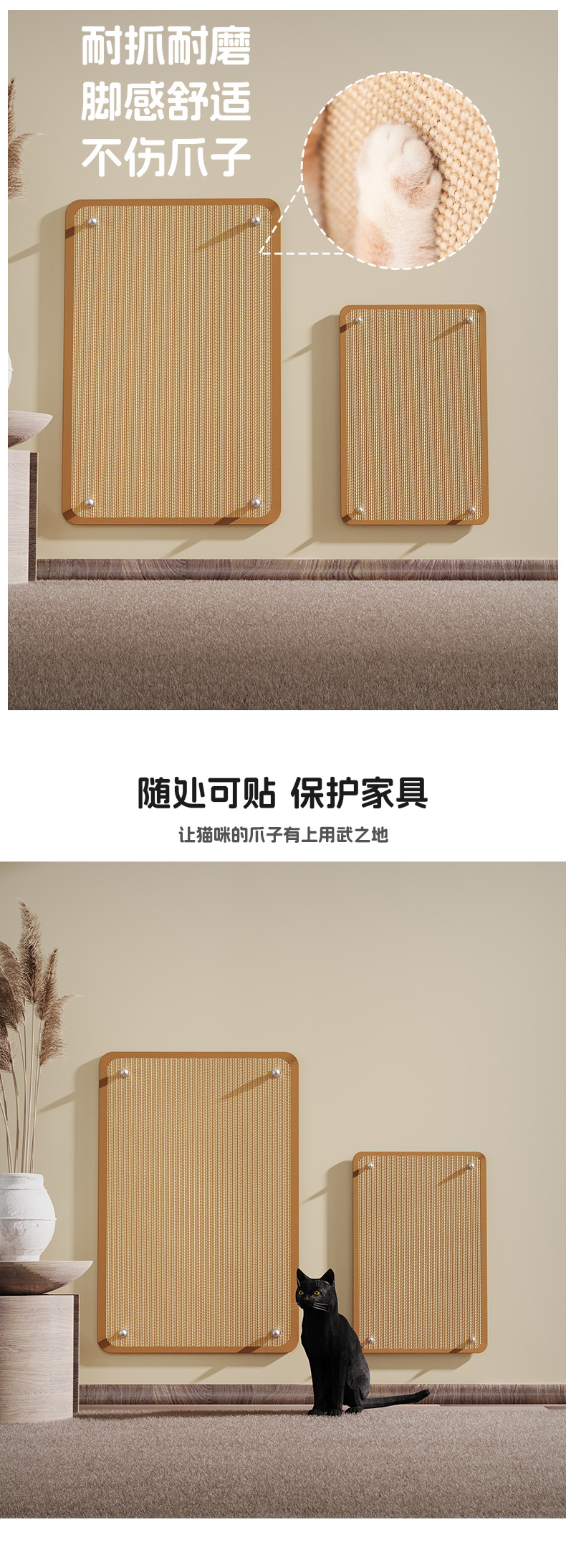 고양이 스크래치 보드, 흔적 없는 벽 부착형 사자수 매트, 긁힘 방지, 부스러기 없음, 소파 보호, 고양이 자가놀이 장난감, 애완용품스토어 가기