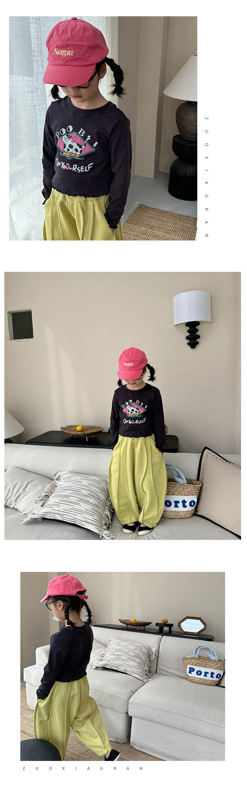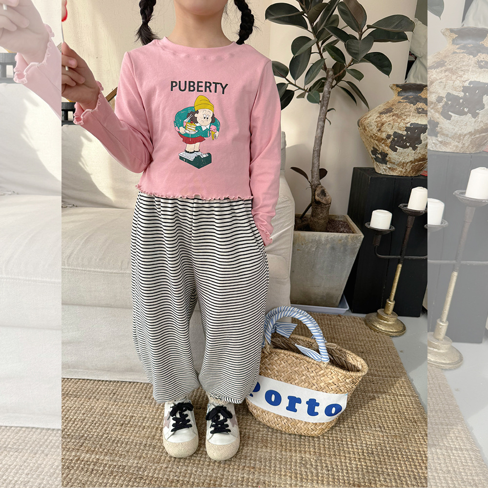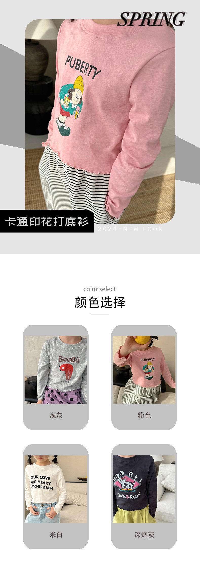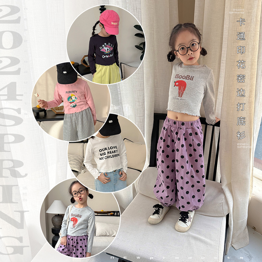 Zuo Xiaoran 아동복 2024 어린이 만화 인쇄 짧은 바닥 다양한 세련된 긴팔 바닥 셔츠