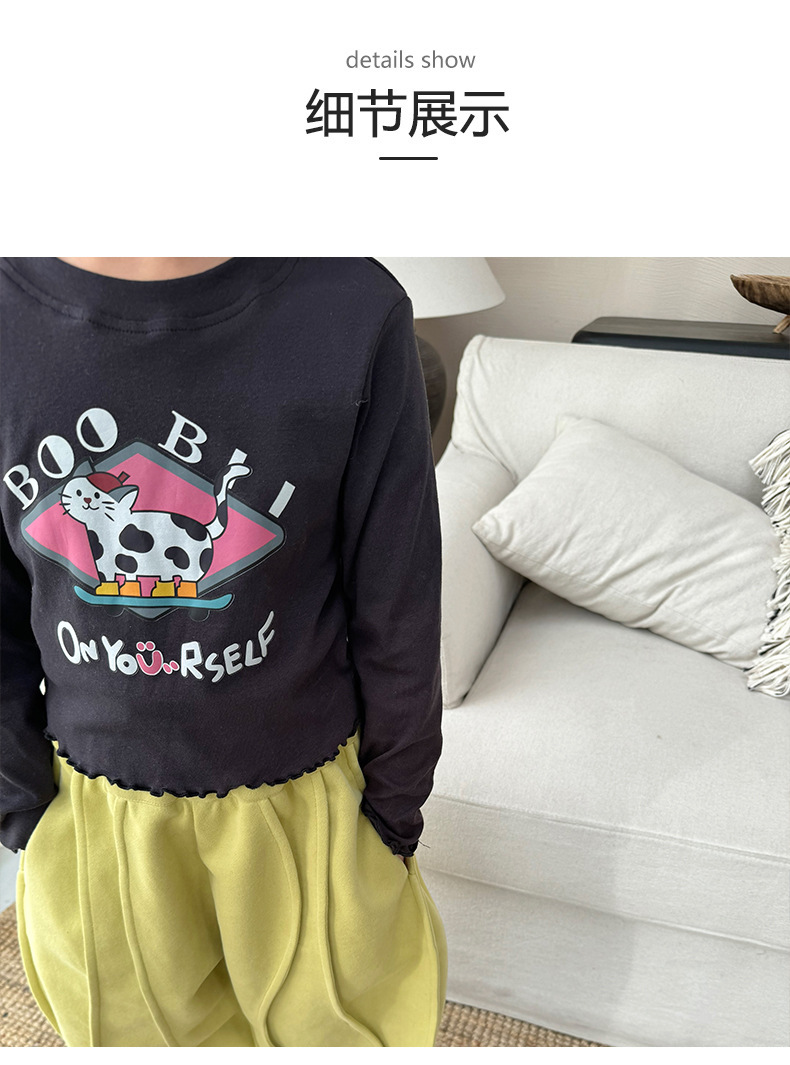 Zuo Xiaoran 아동복 2024 어린이 만화 인쇄 짧은 바닥 다양한 세련된 긴팔 바닥 셔츠스토어 가기