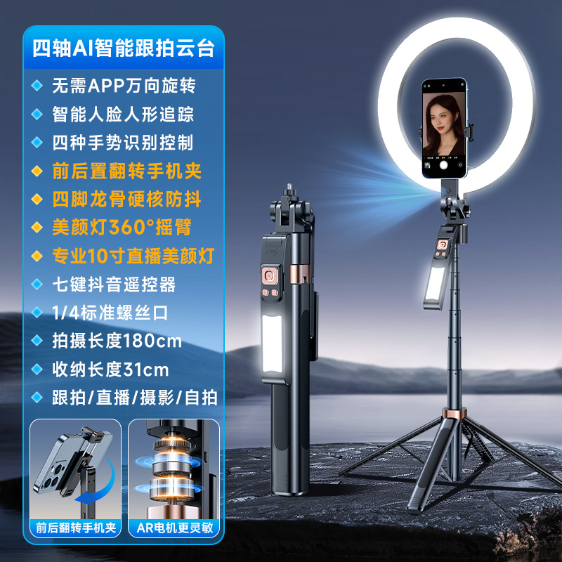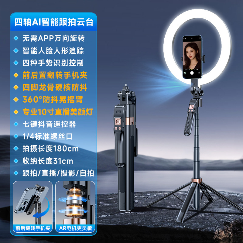 • CL12P-[10inch 대형 원형 조명] Douyin Bluetooth 추적 짐벌 브래킷 블랙