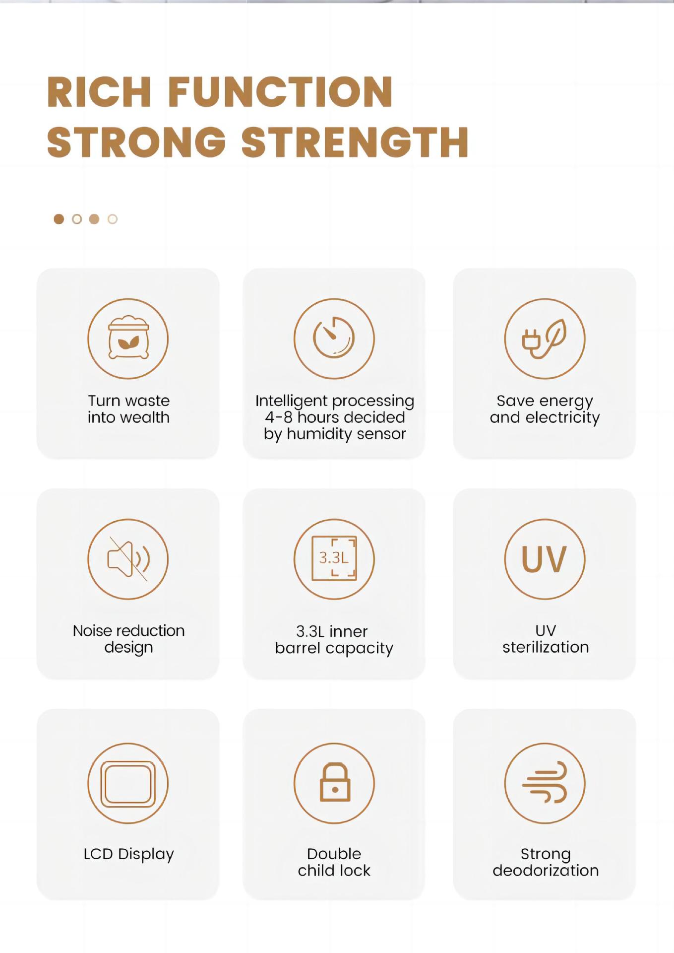 Beeco composter 주방 폐기물 분쇄기 자동 스마트 쓰레기통