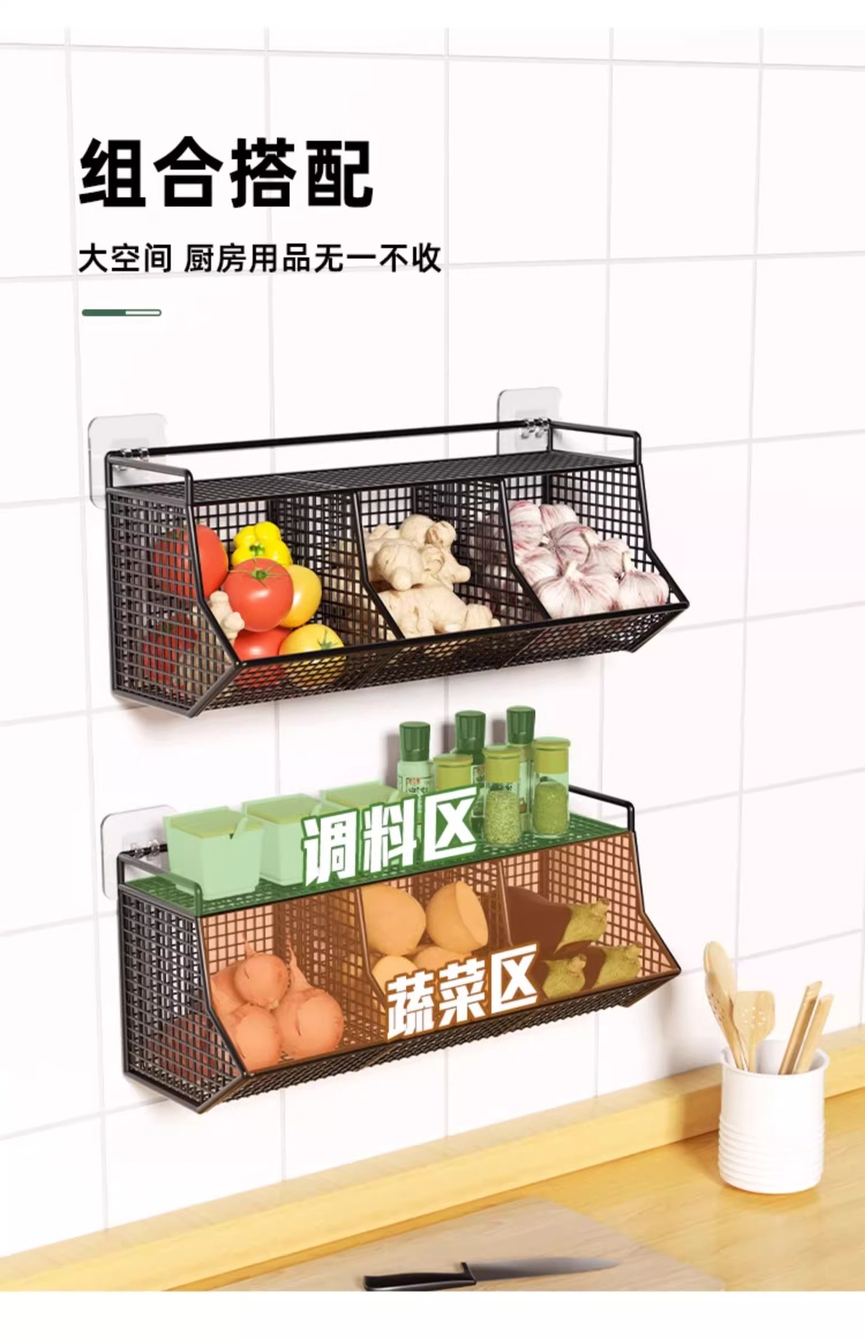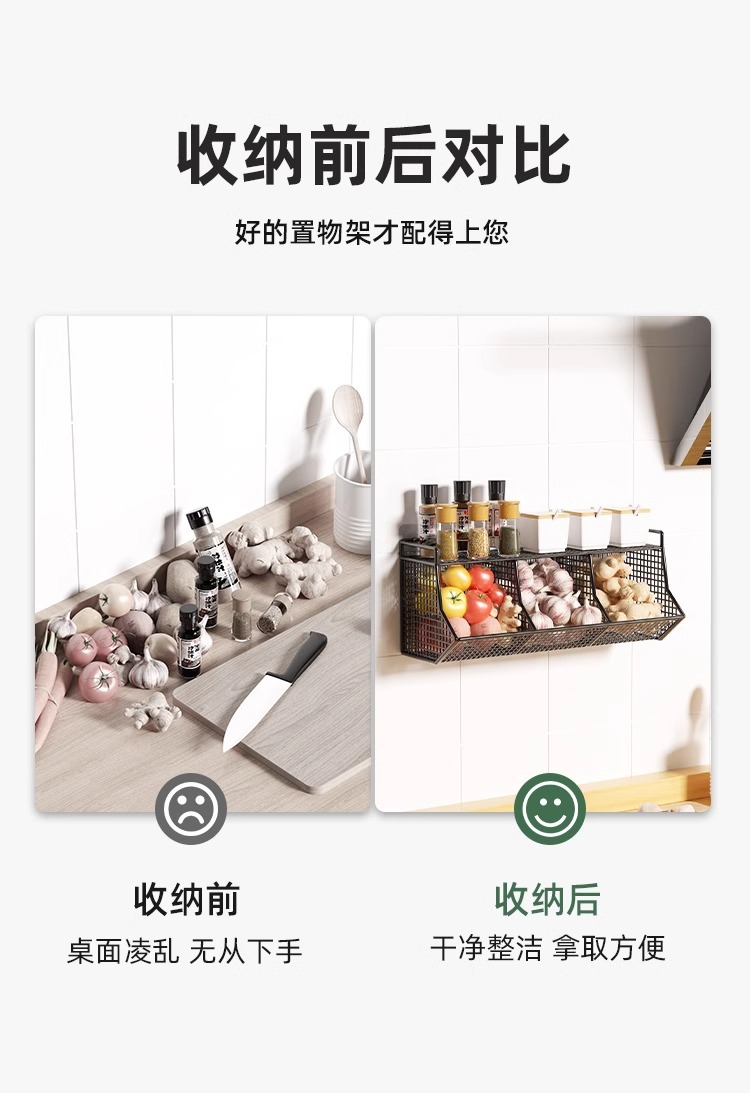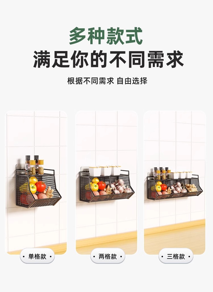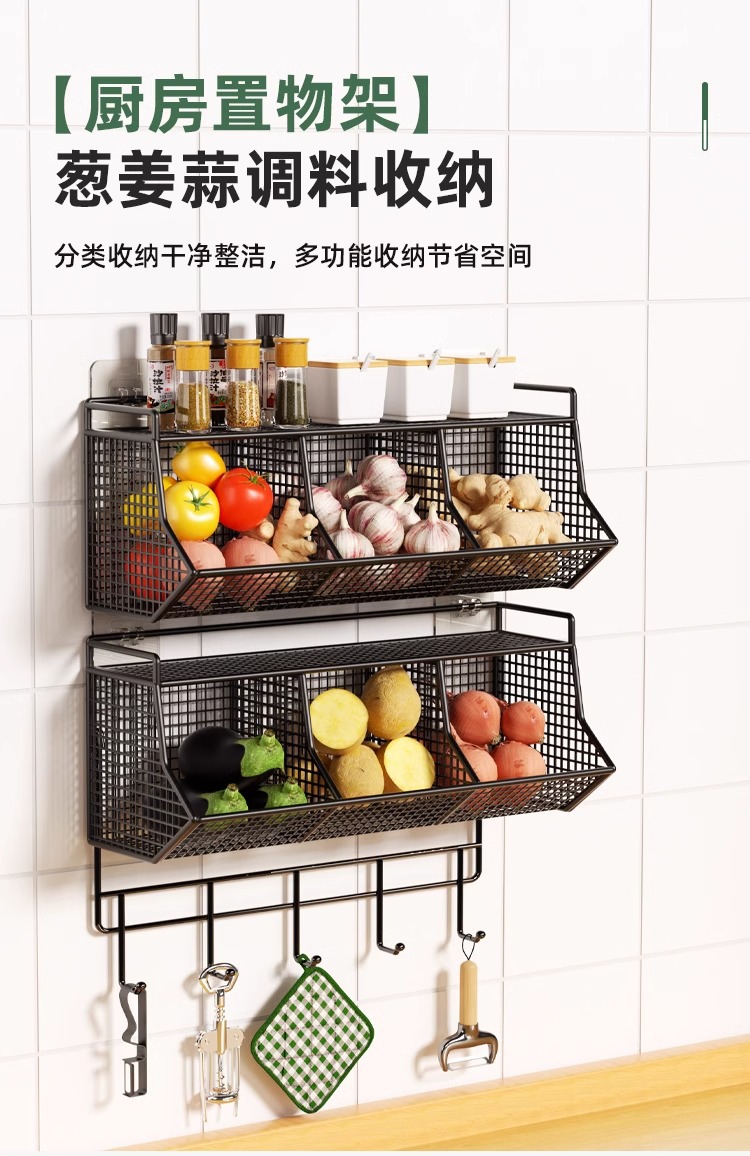 두피, 생강 및 마늘 저장 상자 바구니 벽에 매달려 펀치 프리 스토리지 랙 주방 생강 및 마늘 다기능 주방 스파이스 랙