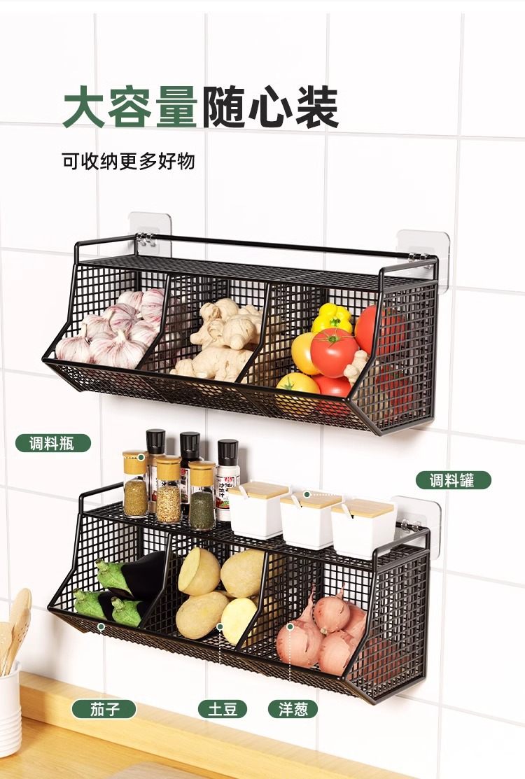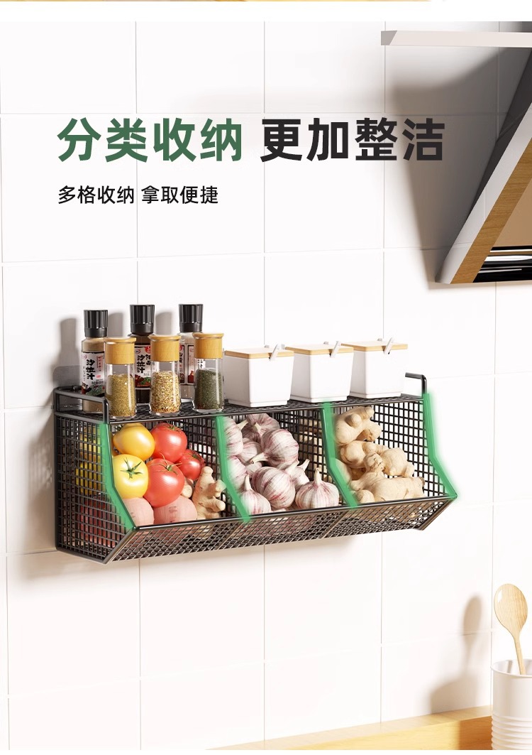 두피, 생강 및 마늘 저장 상자 바구니 벽에 매달려 펀치 프리 스토리지 랙 주방 생강 및 마늘 다기능 주방 스파이스 랙스토어 가기