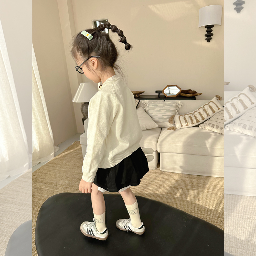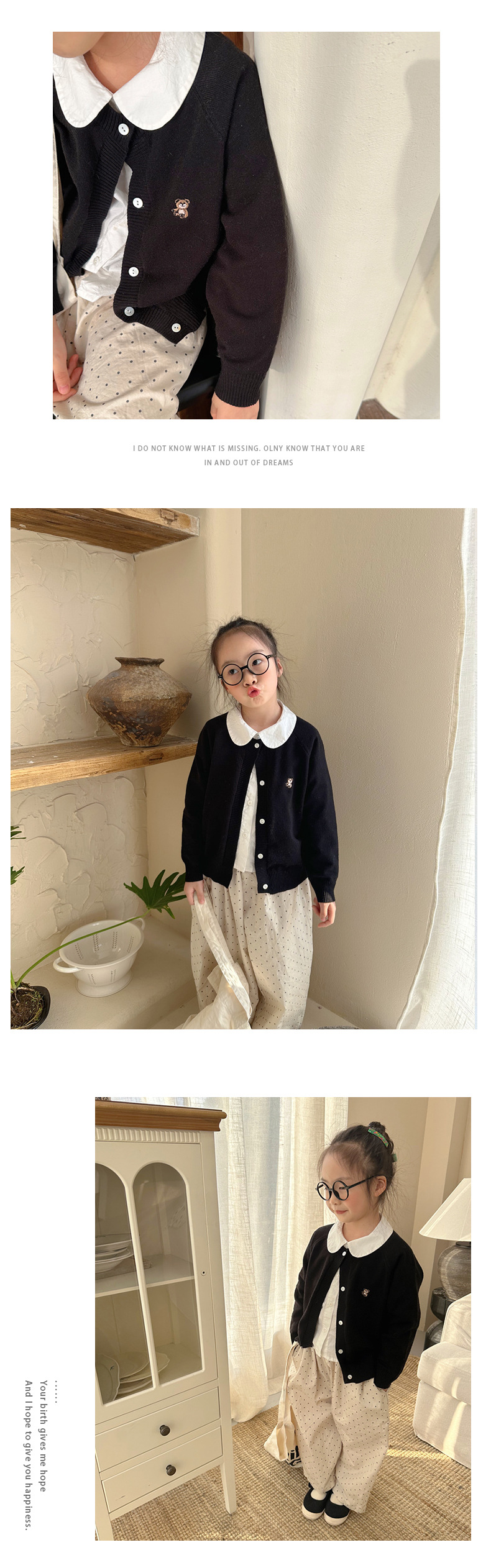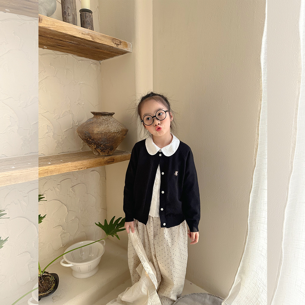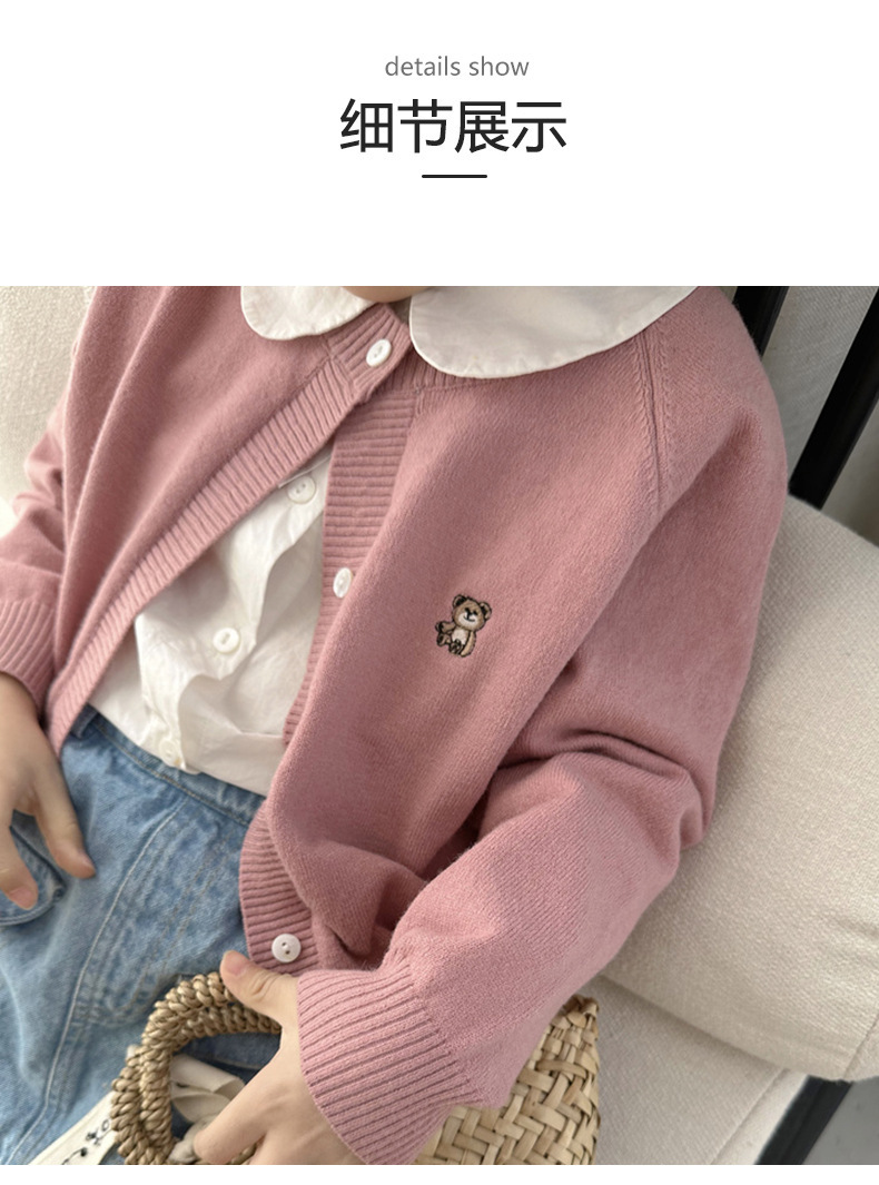 Zuo Xiaoran 어린이 2024 봄 한국 스타일 어린이 곰 자수 카디건 만화 자수 긴 소매 스웨터 소년 소녀