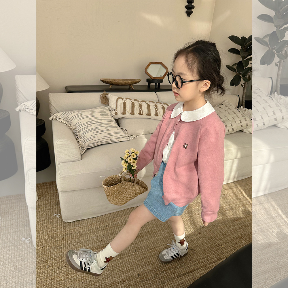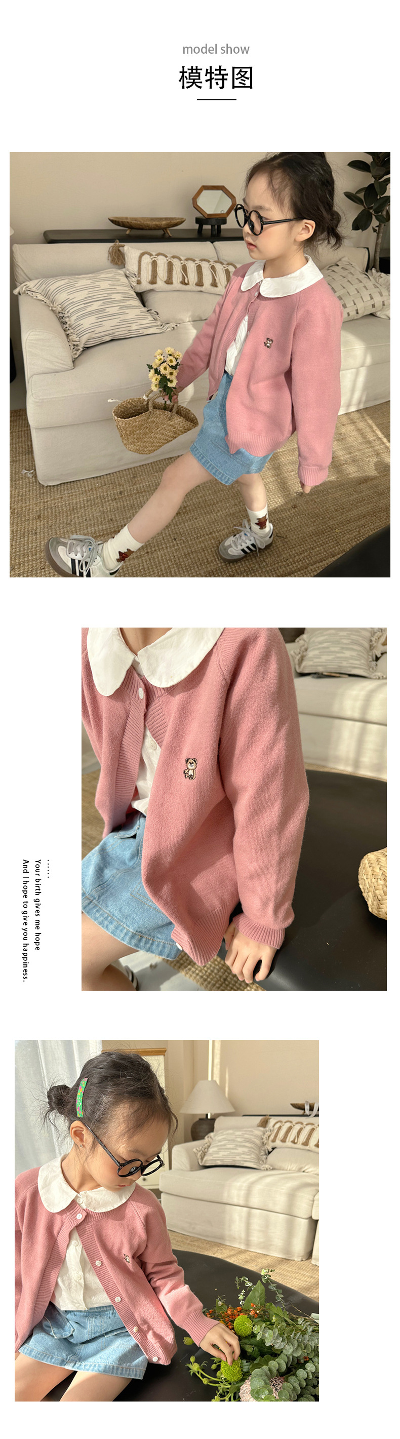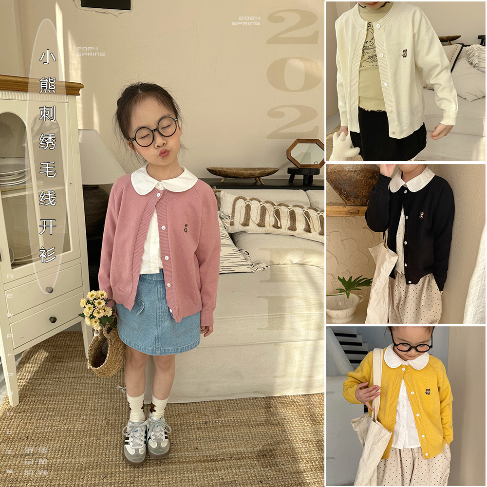 Zuo Xiaoran 어린이 2024 봄 한국 스타일 어린이 곰 자수 카디건 만화 자수 긴 소매 스웨터 소년 소녀스토어 가기