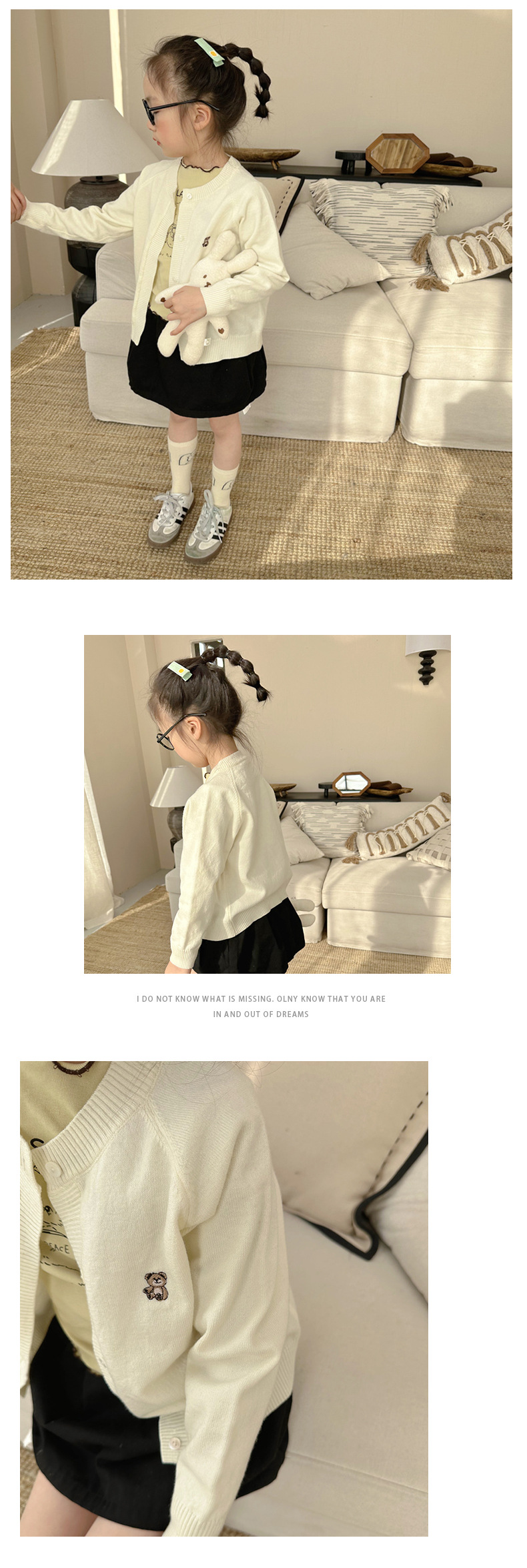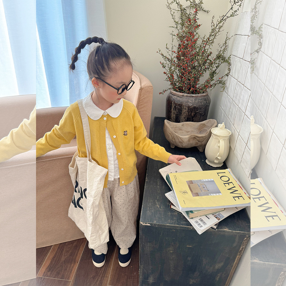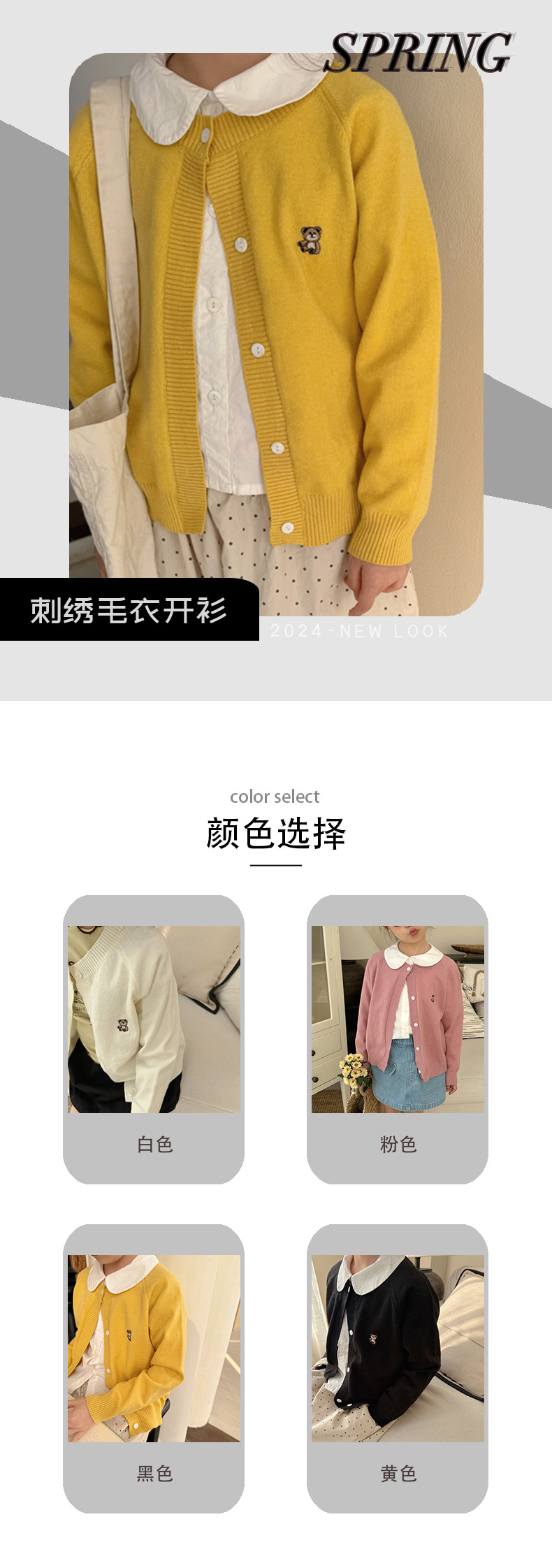 Zuo Xiaoran 어린이 2024 봄 한국 스타일 어린이 곰 자수 카디건 만화 자수 긴 소매 스웨터 소년 소녀스토어 가기