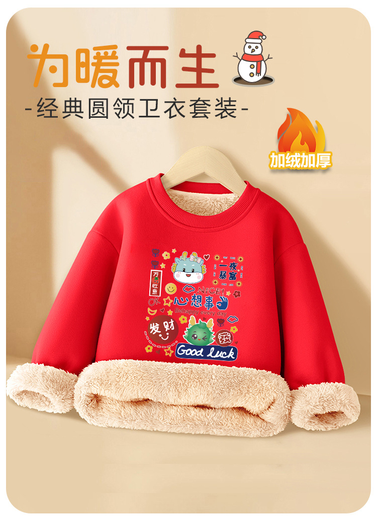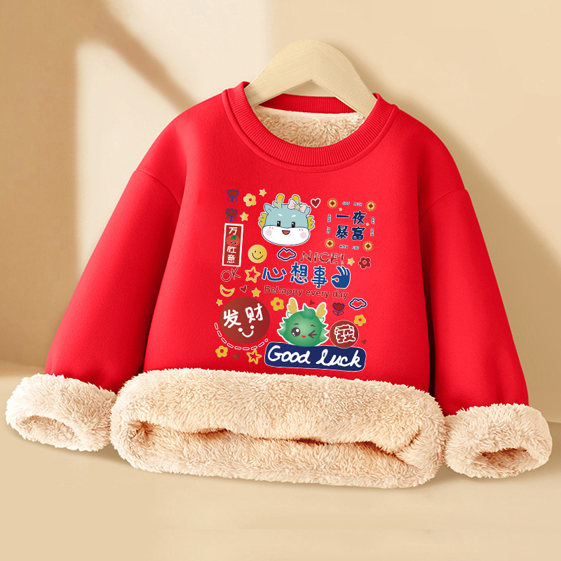 소년 기모 스웨터 새해 복 축제 붉은 새해 옷 용 새해 소녀 출생 년 아기 탑