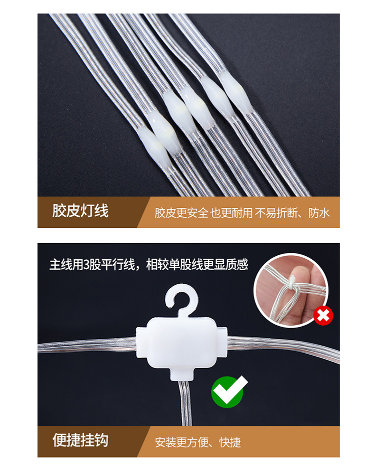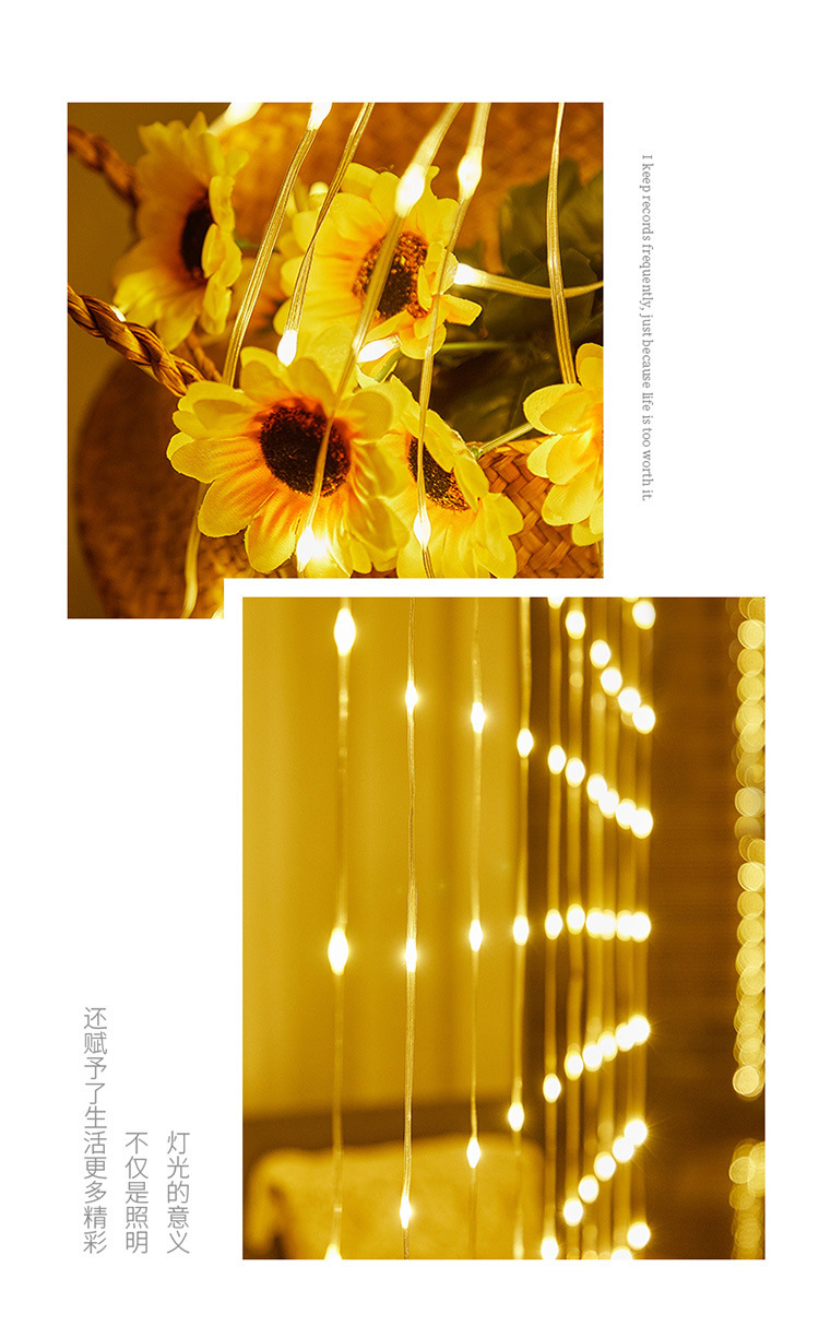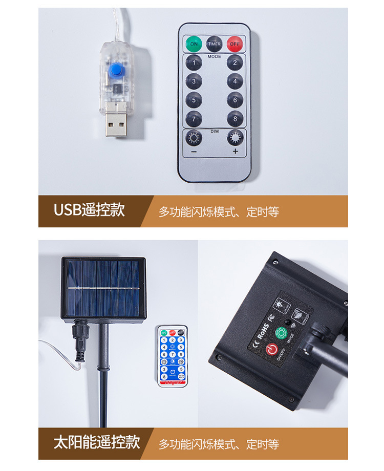 국경 새로운 LED 가죽 커튼 빛 야외 방수 원격 제어 태양 커튼 실행 빛 USB 폭포 빛