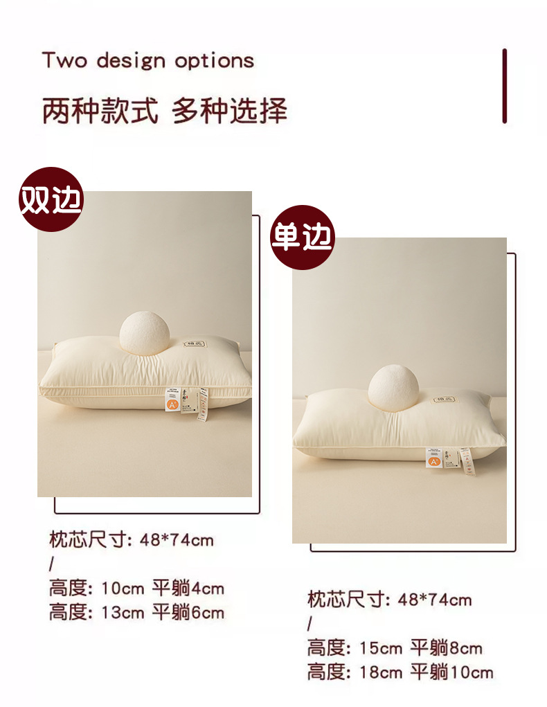 • 양측중베개 [단품] [잠자기 약 7-8cm] [A급 순면 항균, 진드기 방지]
