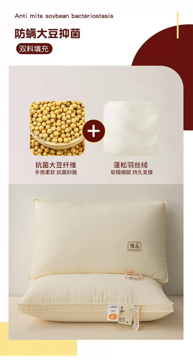 클래스 A 면 베개 자궁 경부 척추 보호 베개 코어는 수면 학생 기숙사 남성 호텔 전용 단일 낮은 가구 쌍을 돕습니다