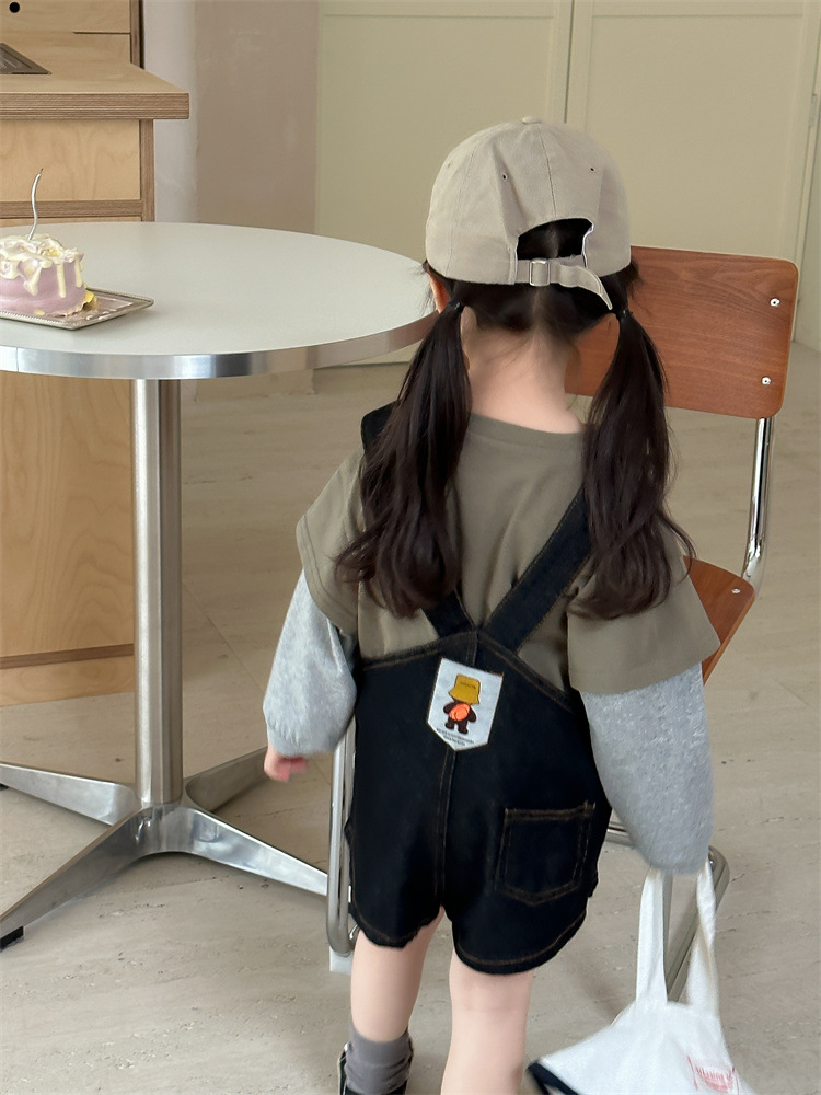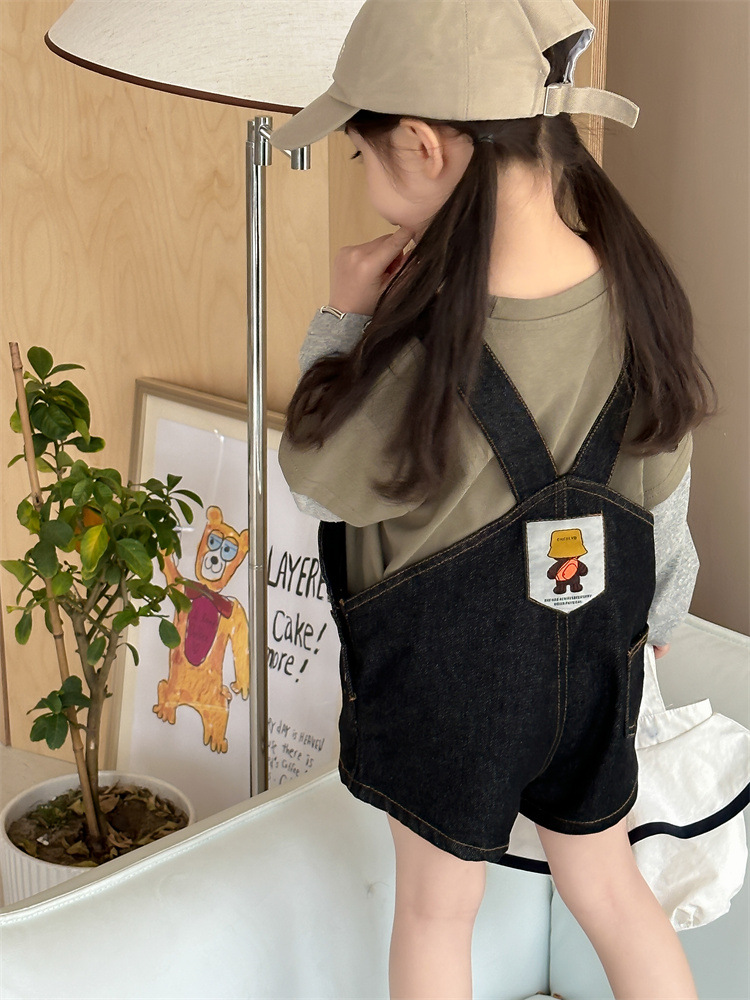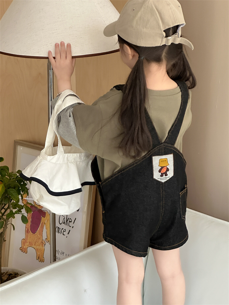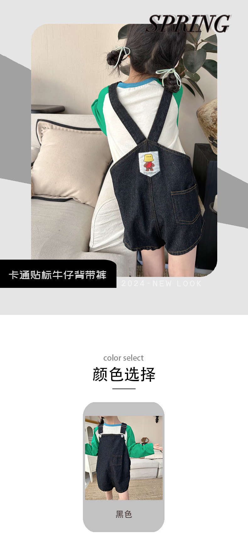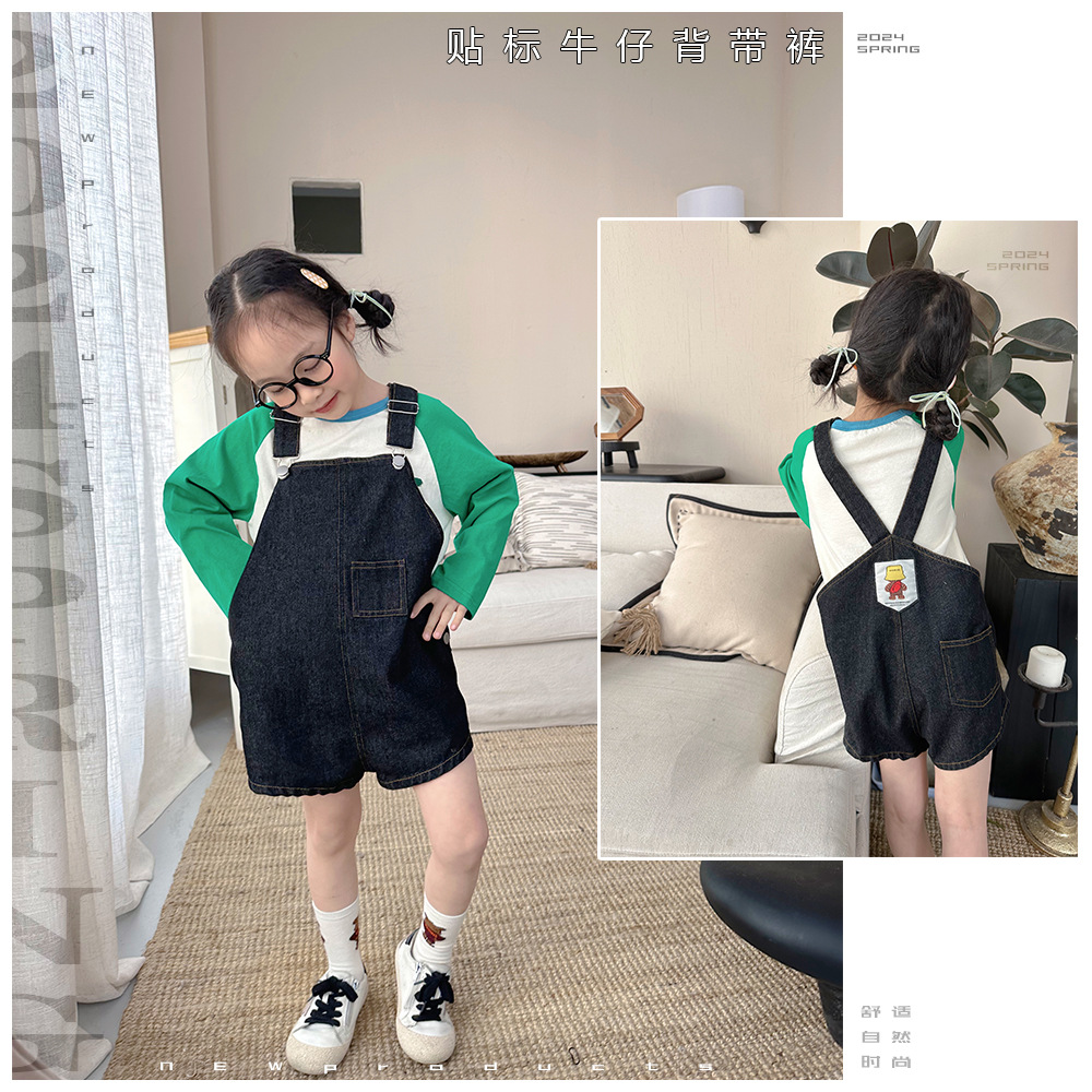 Zuo Xiaoran 아동복 2024 봄 한국 스타일 소년 소녀 만화 라벨링 청바지 패션 캐주얼 스트랩 반바지스토어 가기