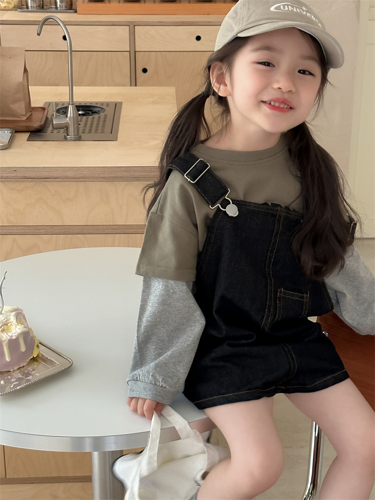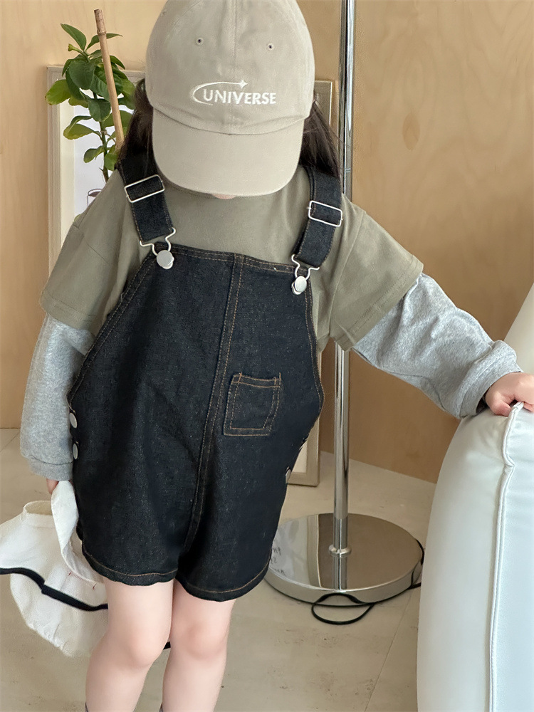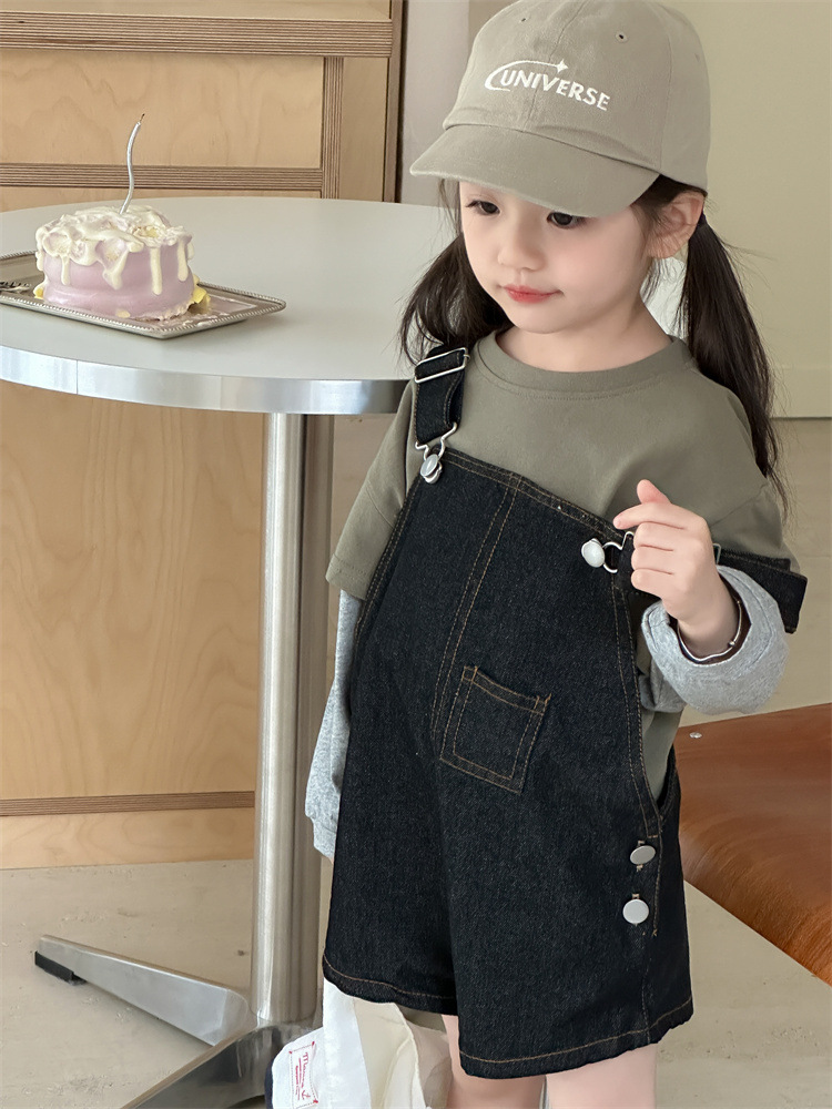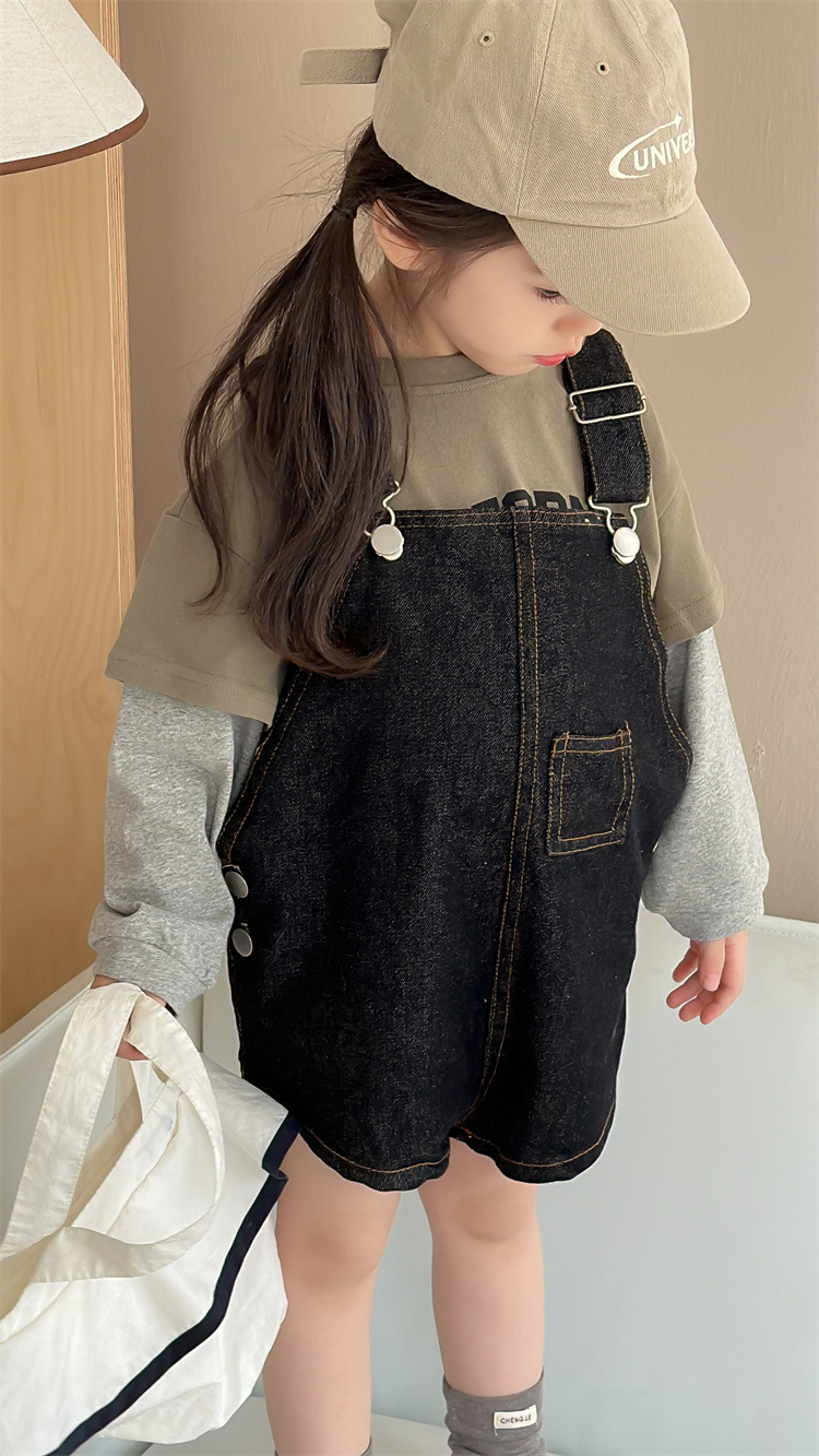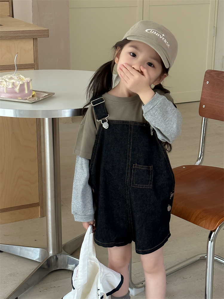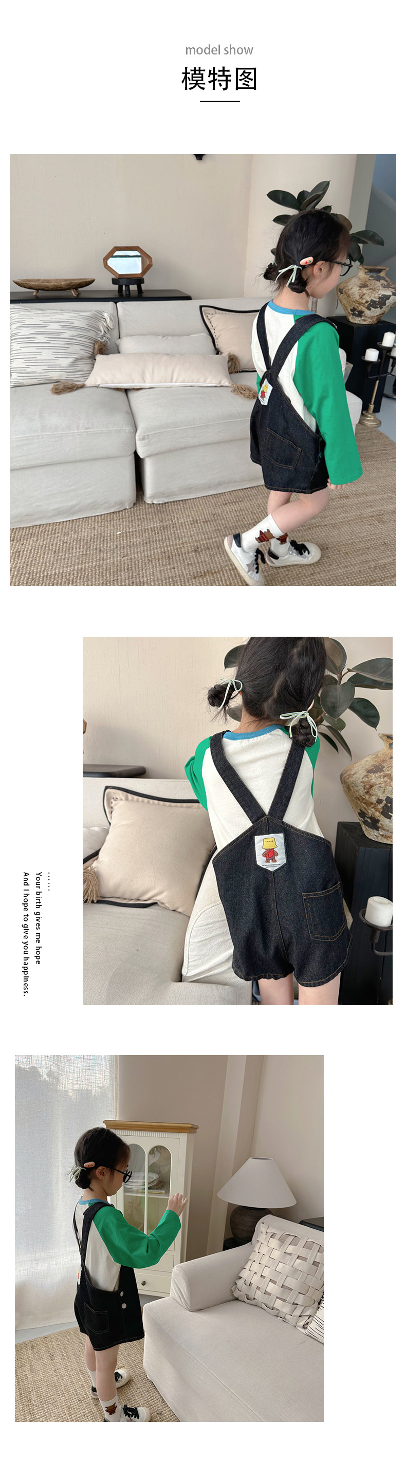 Zuo Xiaoran 아동복 2024 봄 한국 스타일 소년 소녀 만화 라벨링 청바지 패션 캐주얼 스트랩 반바지스토어 가기