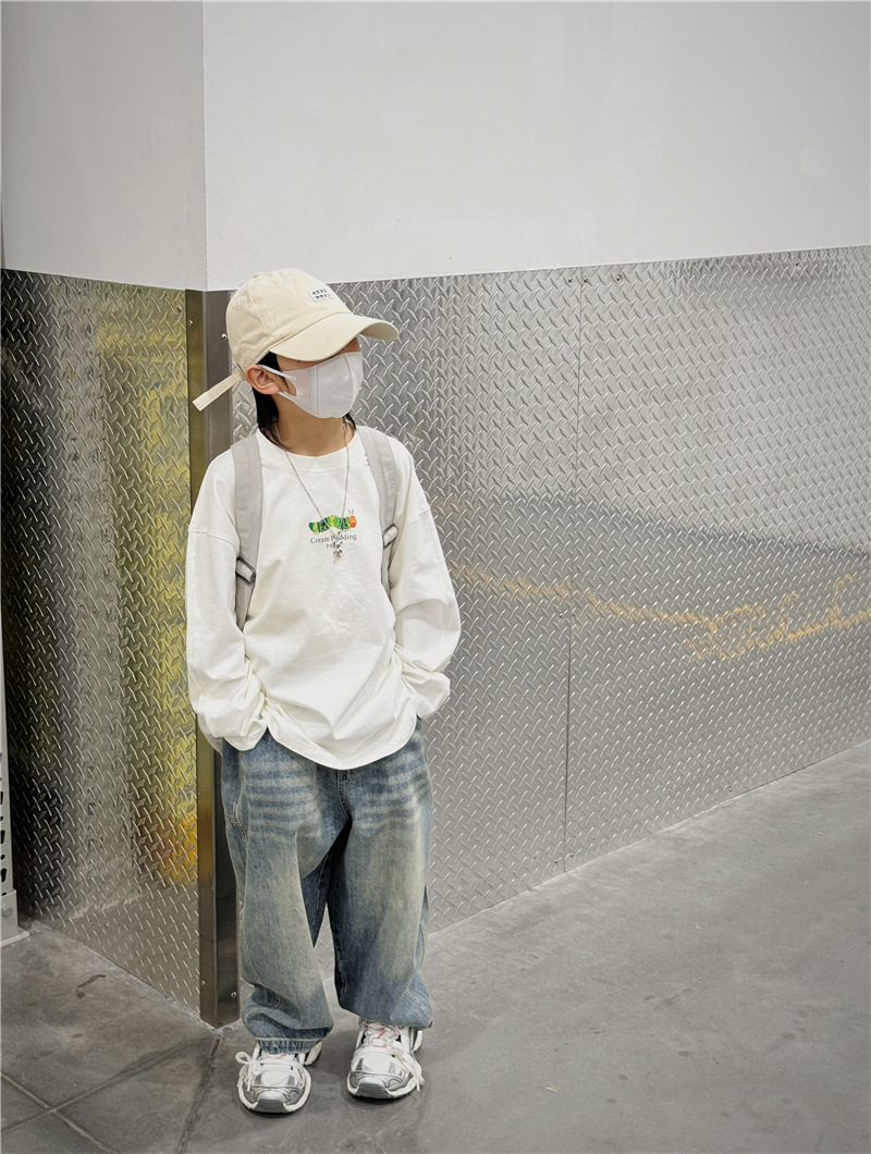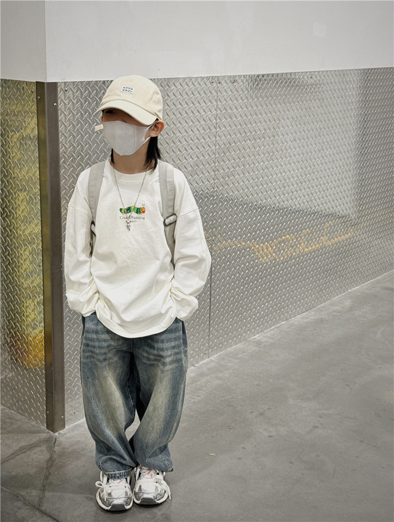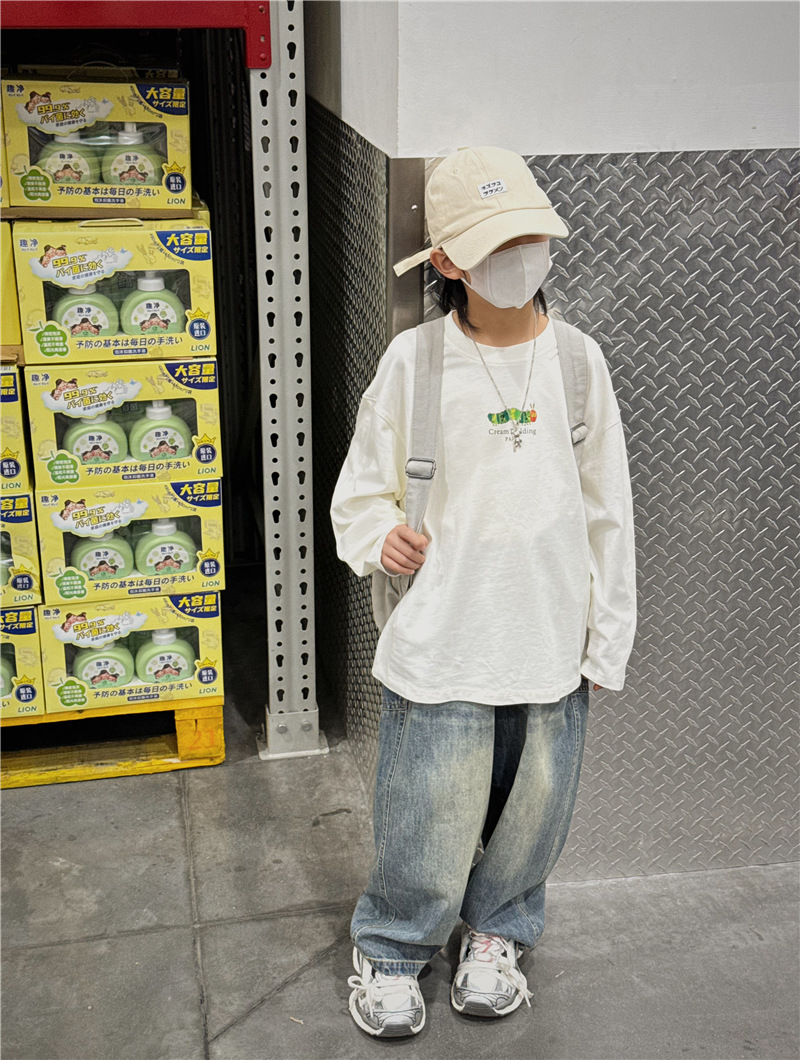 Baoduo 아동복 소년 긴팔 티셔츠 봄 2024 봄과 가을 새 티셔츠 어린이 언더 셔츠 만화 탑스토어 가기
