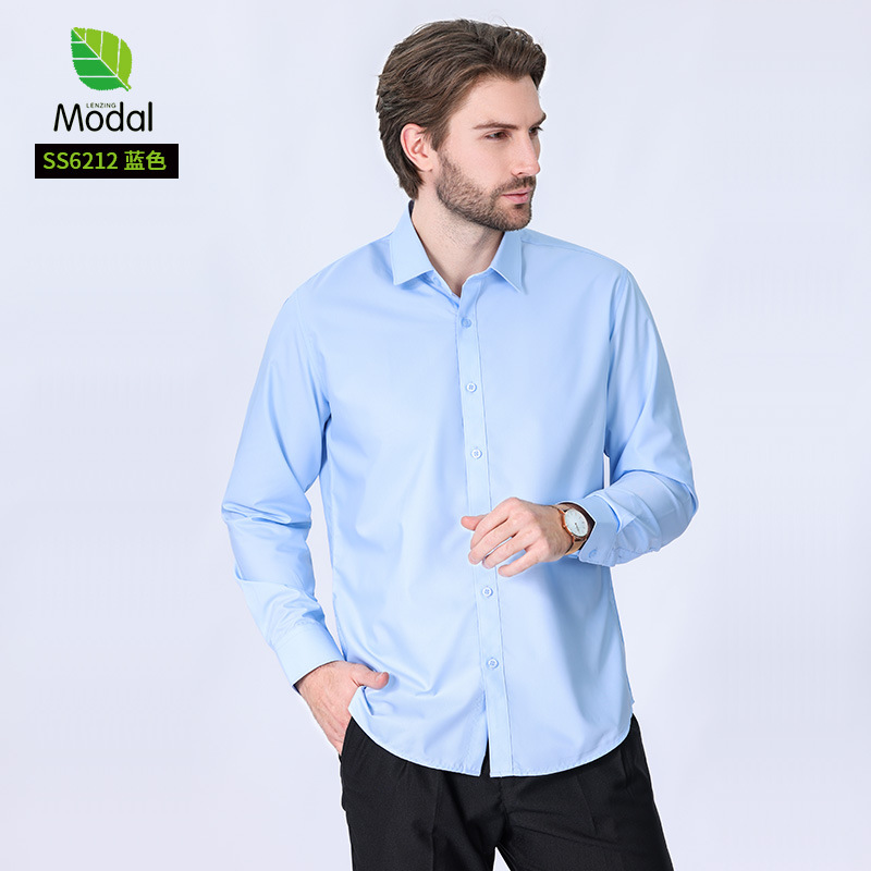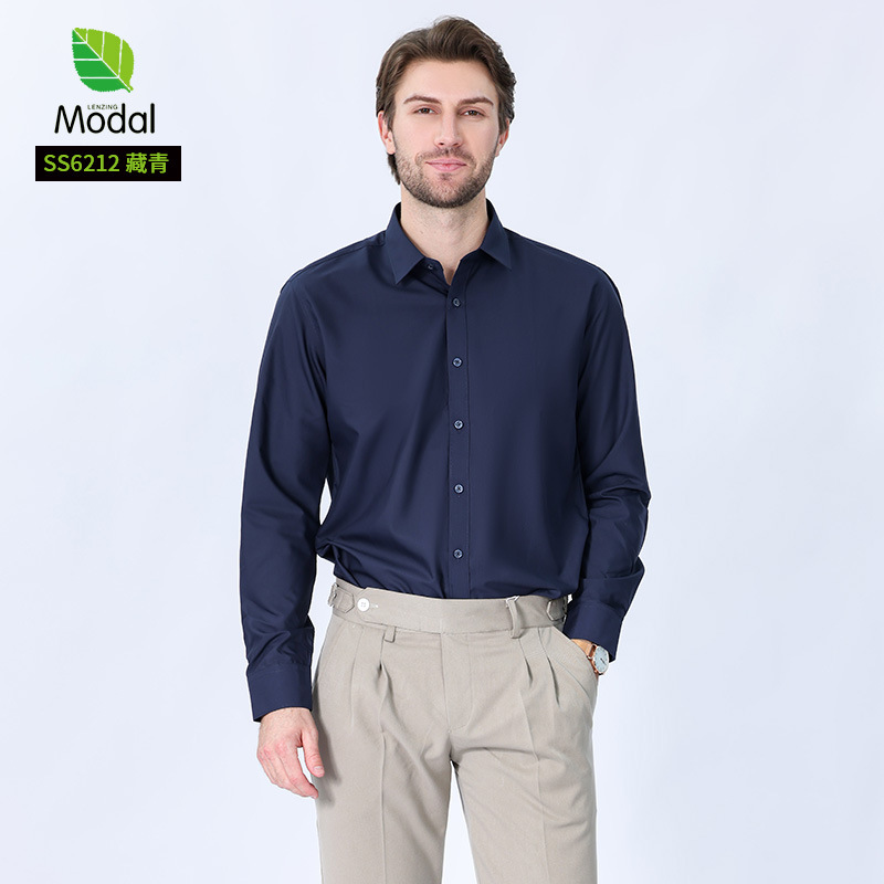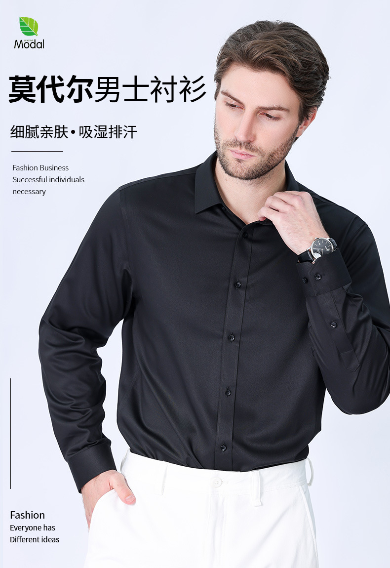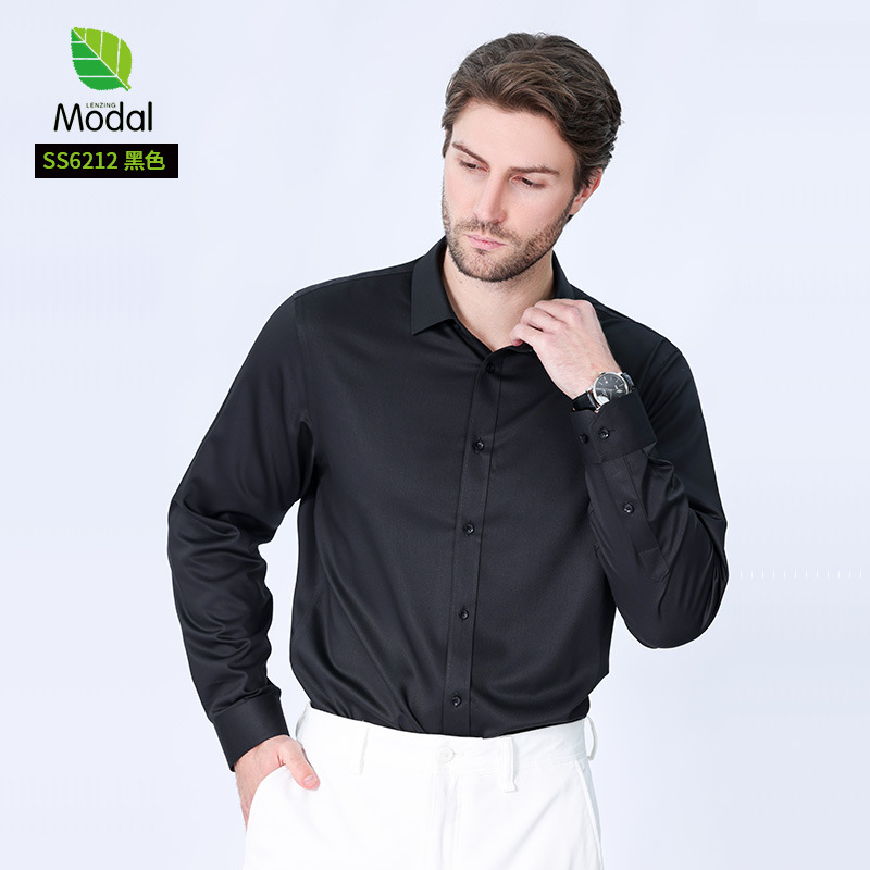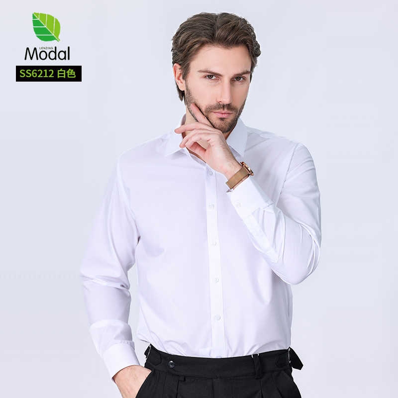 2025년 엄선된 모달 남성용 긴팔 셔츠 봄, 가을 단색 긴팔 건조하고 편안한 모달 화이트 셔츠