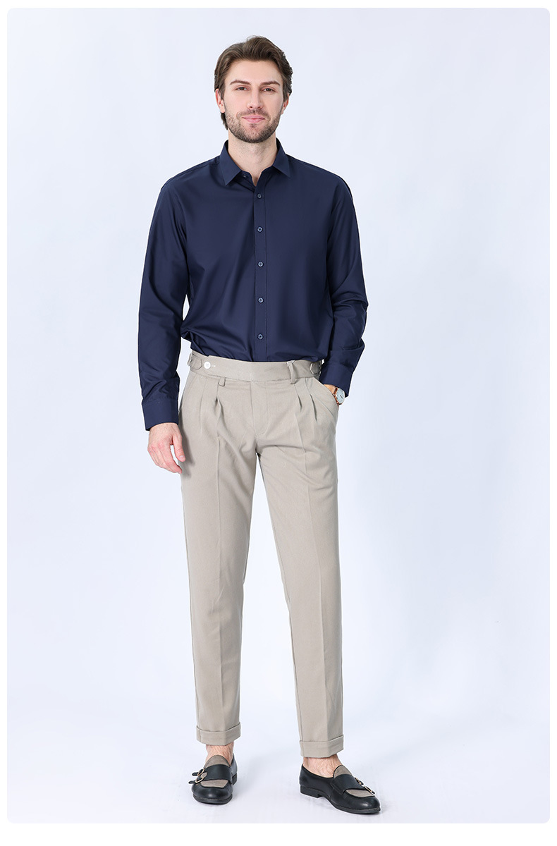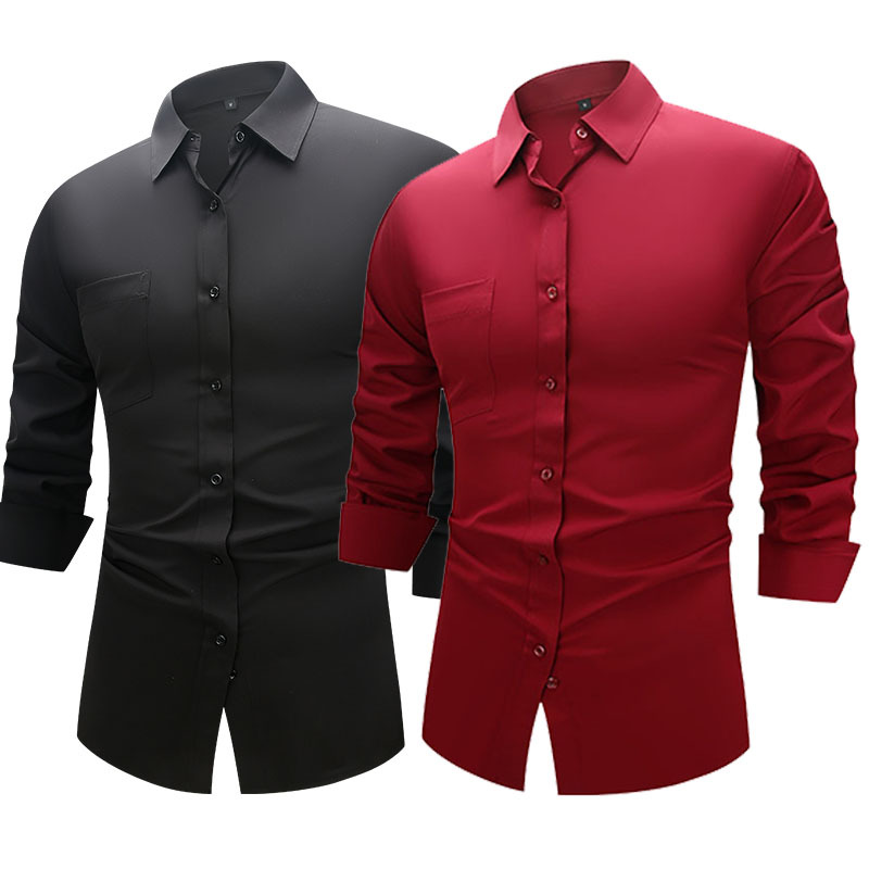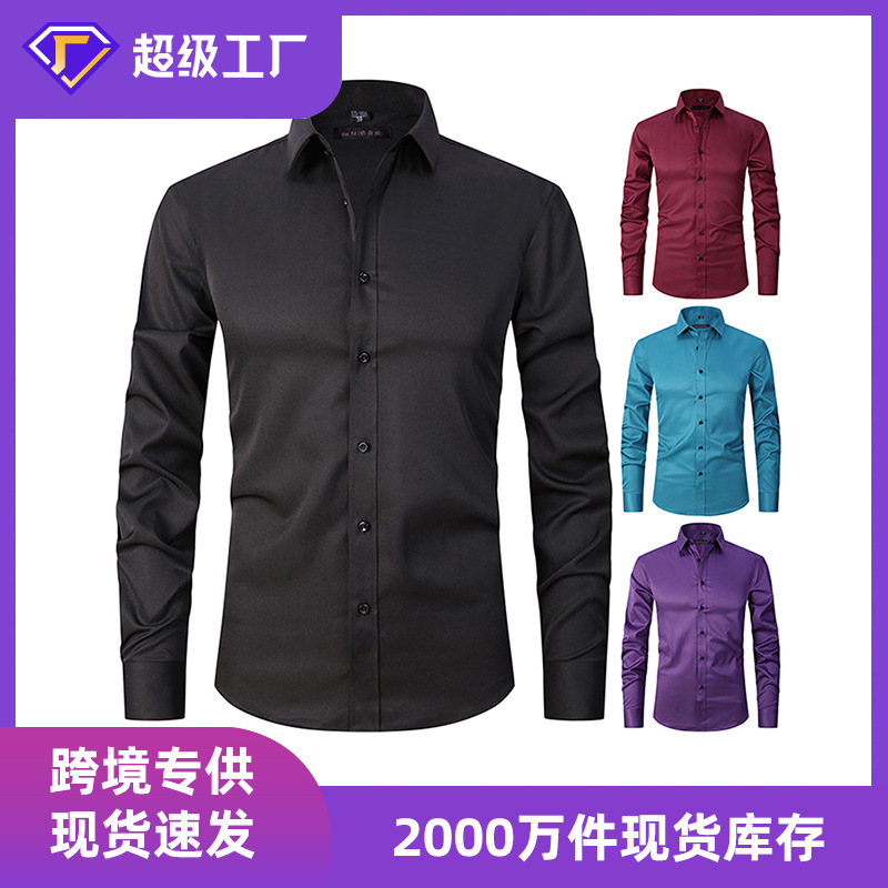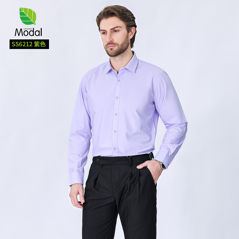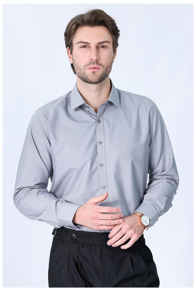 2025년 엄선된 모달 남성용 긴팔 셔츠 봄, 가을 단색 긴팔 건조하고 편안한 모달 화이트 셔츠
