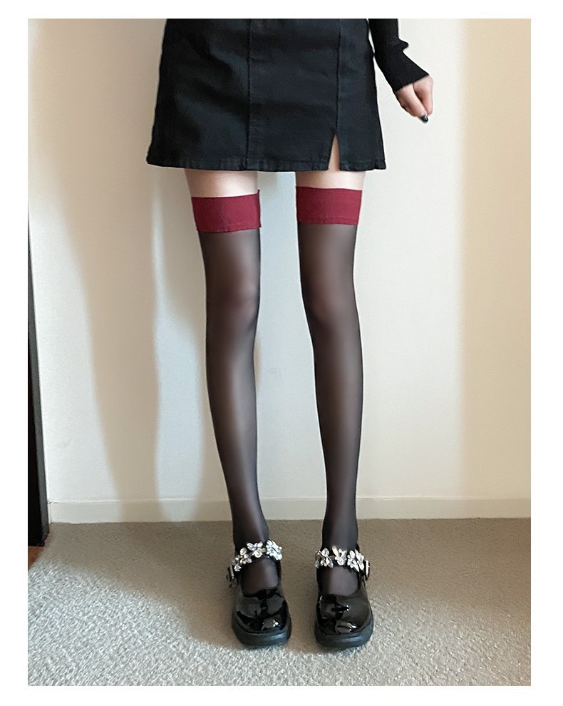 섹시한 란제리 스타킹 검은 색 인터넷 유명 인사 섹시한 빨간 가장자리 스티칭 섹시한 얇은 검은 실크 순수한 욕망 긴 튜브스토어 가기
