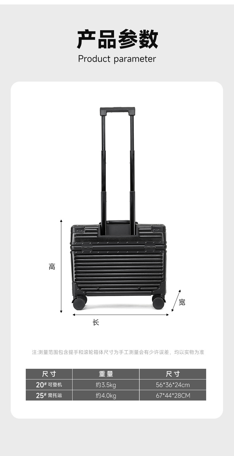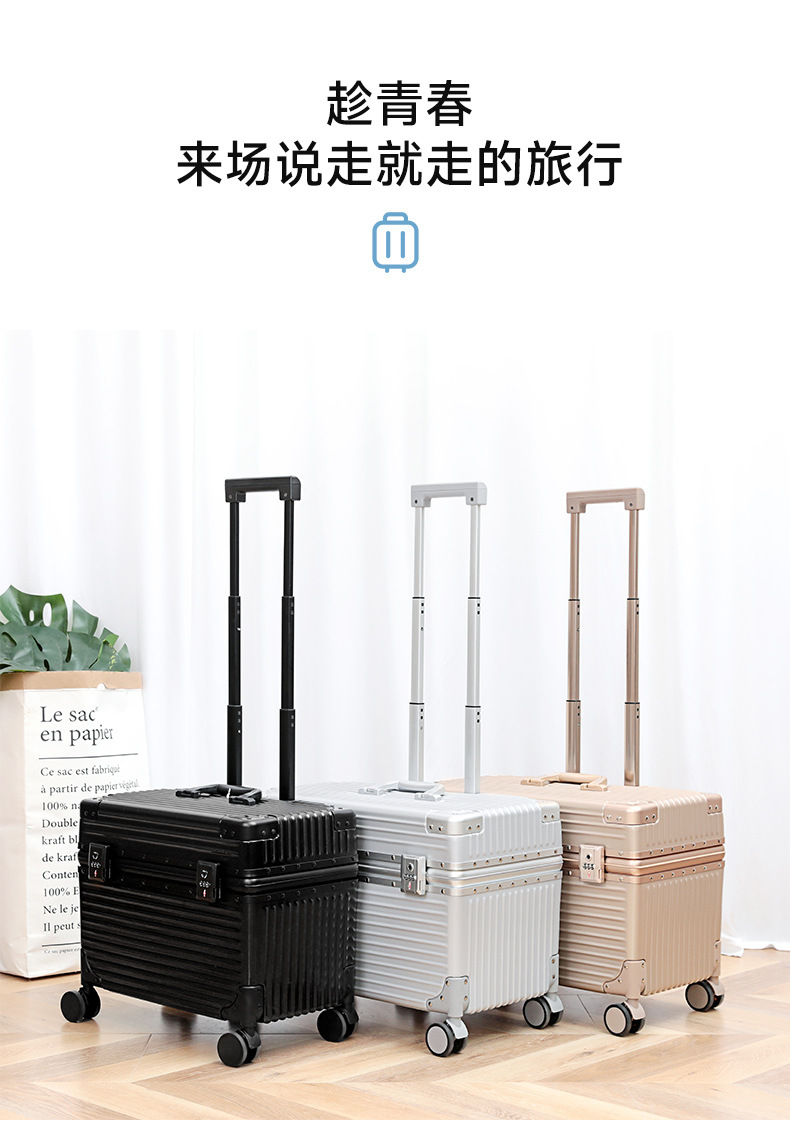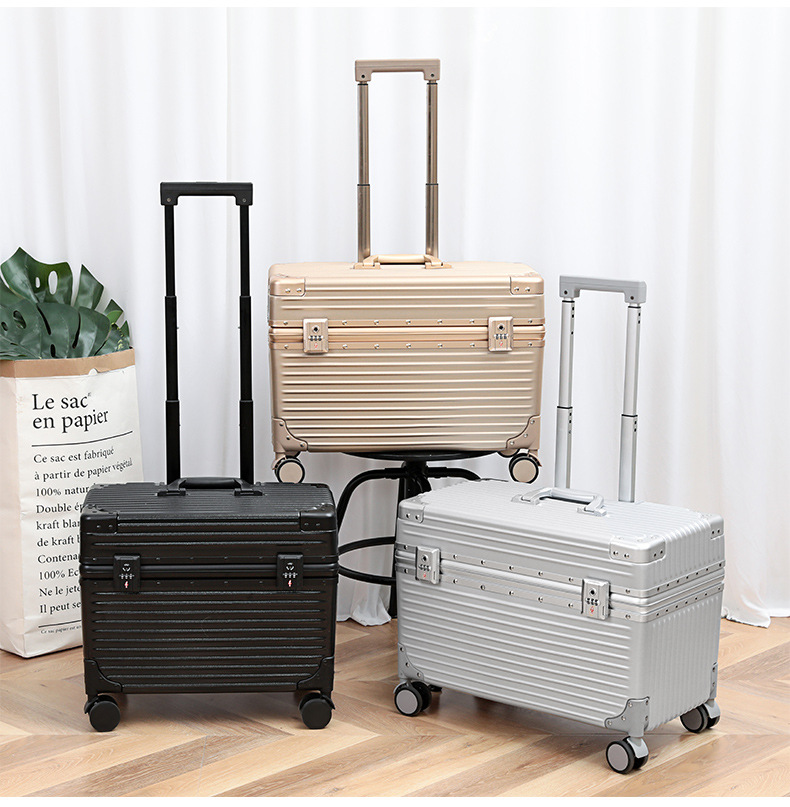 18 인치 긴 박스 항공 탑승 케이스 패션 사진 상자 알루미늄 프레임 수하물 남성과 여성의 유니버설 휠 여행 트롤리 케이스