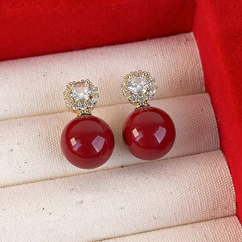 빈티지 레드 펄 지르콘 귀걸이 여성용 라이트 럭셔리 하이 엔드 귀걸이 틈새 독특한 우아한 귀걸이 2024 새로운 도착