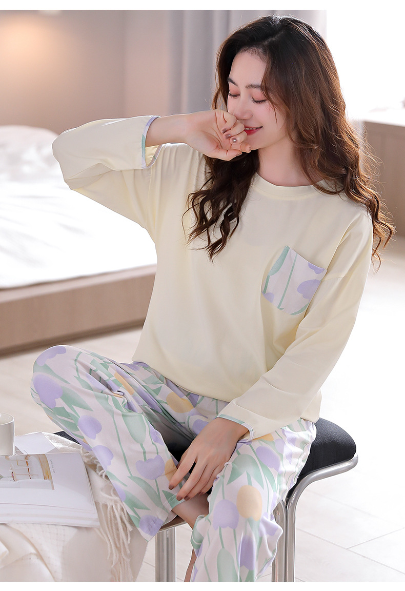 잠옷 여성 봄과 가을 면화 긴팔 여성 가을 2024 새 플러스 사이즈 가을과 겨울 얇은 캐주얼 홈웨어스토어 가기
