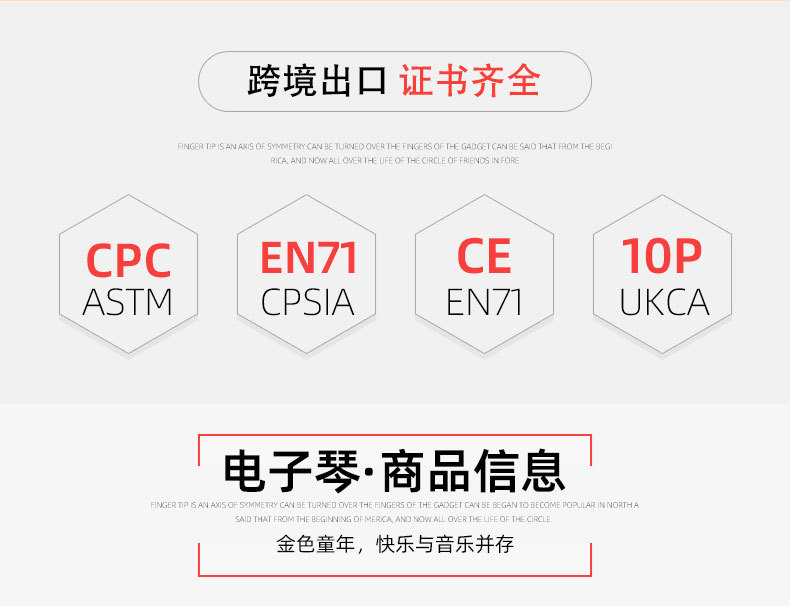 产品证书有:BSEN71,UKCA,EN71,ASTM,CPSIA,10P,CPC,CE