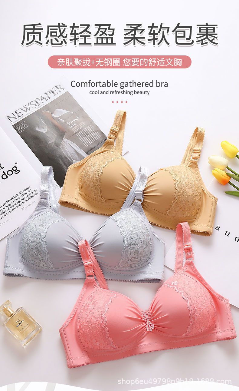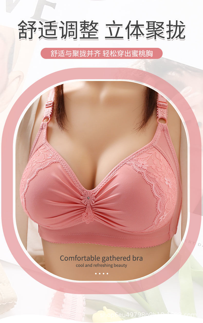 여성용 크로스보더 대형 얇은 속옷, 편안한 푸쉬업 및 푸쉬업 기능, 와이어 없음, 중년용 조절 가능한 브라