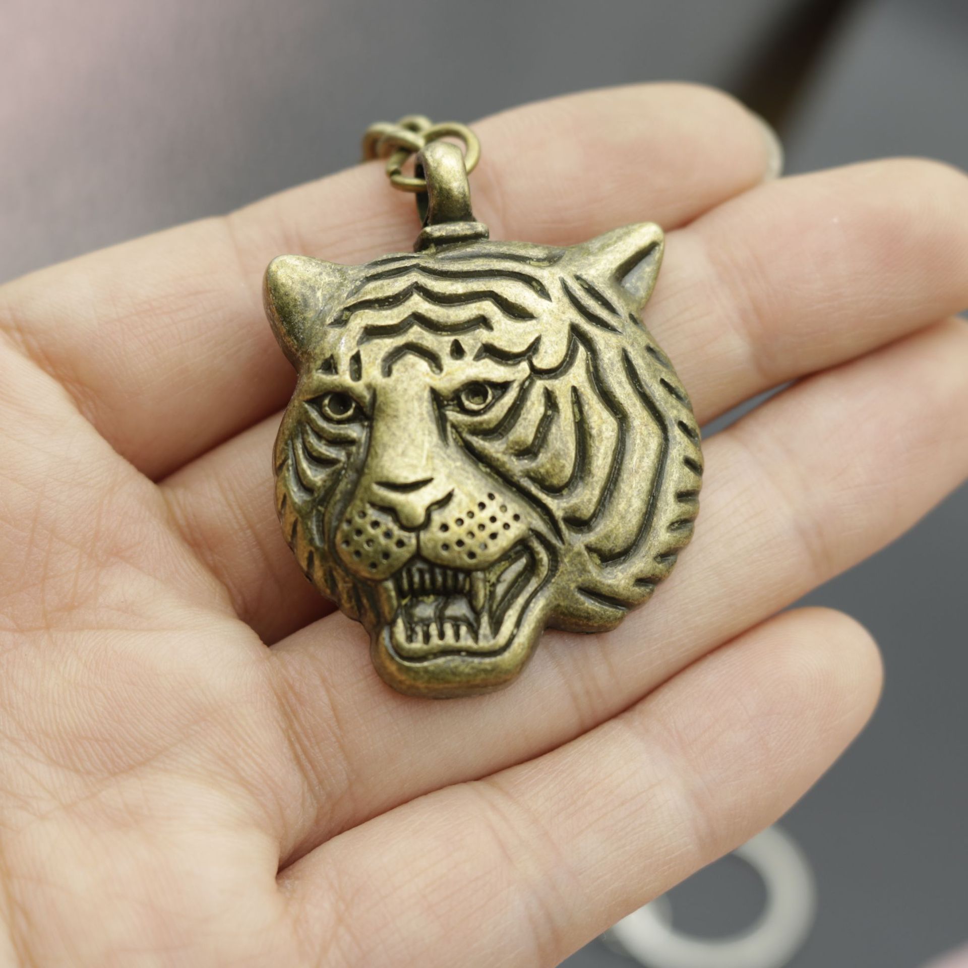 Temu Xiyin AliExpress 아마존 인기 보석 간단한 호랑이 머리 키 체인 펜던트 45x34mm스토어 가기