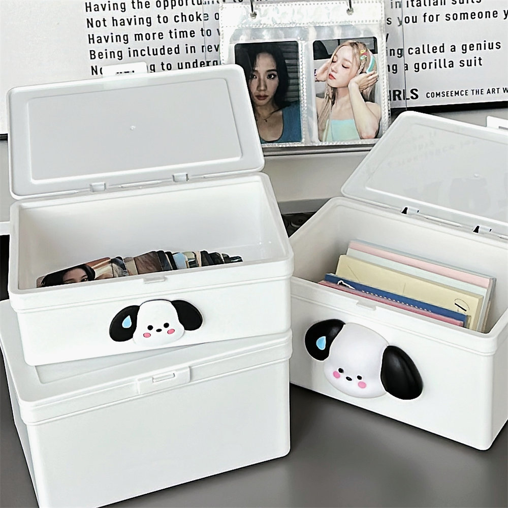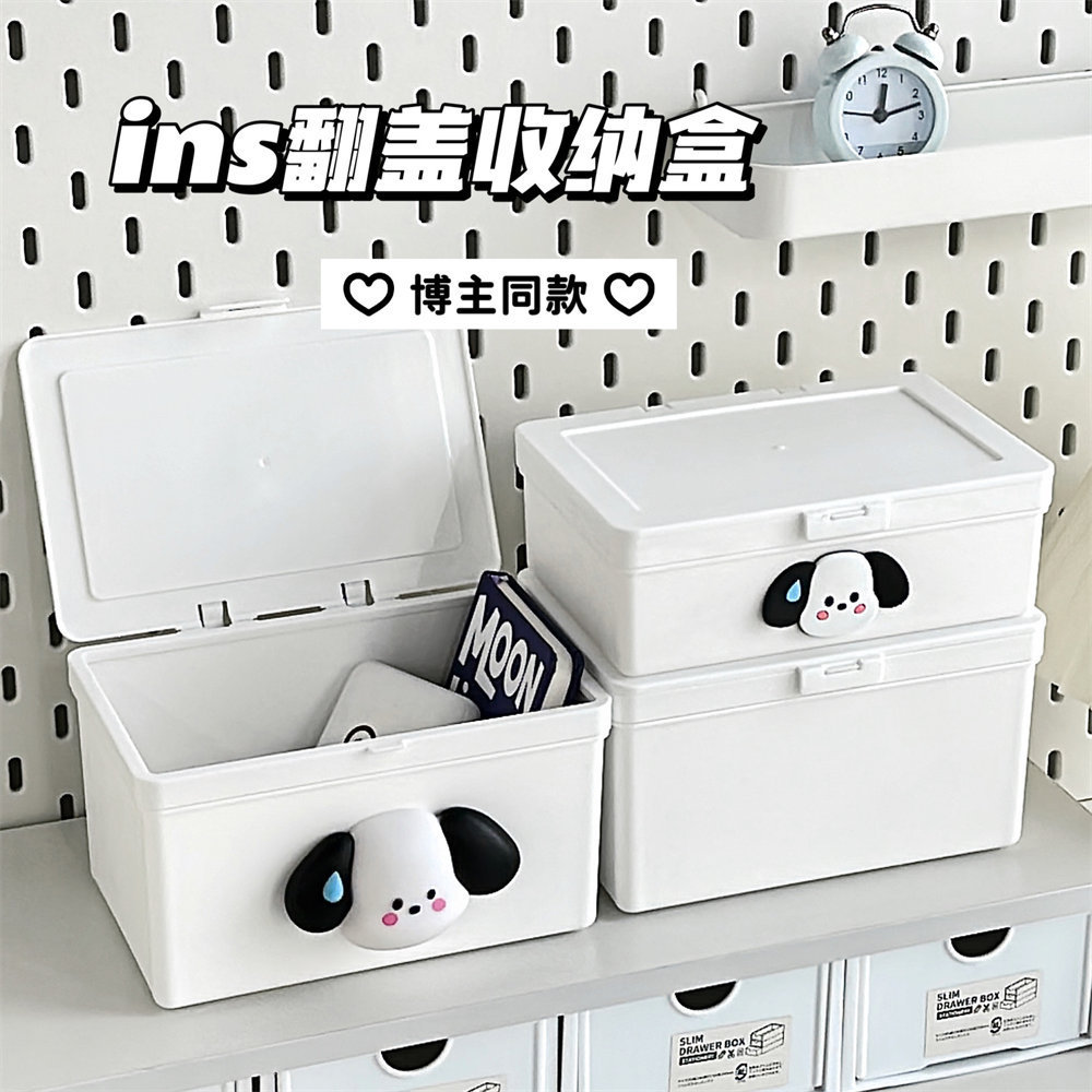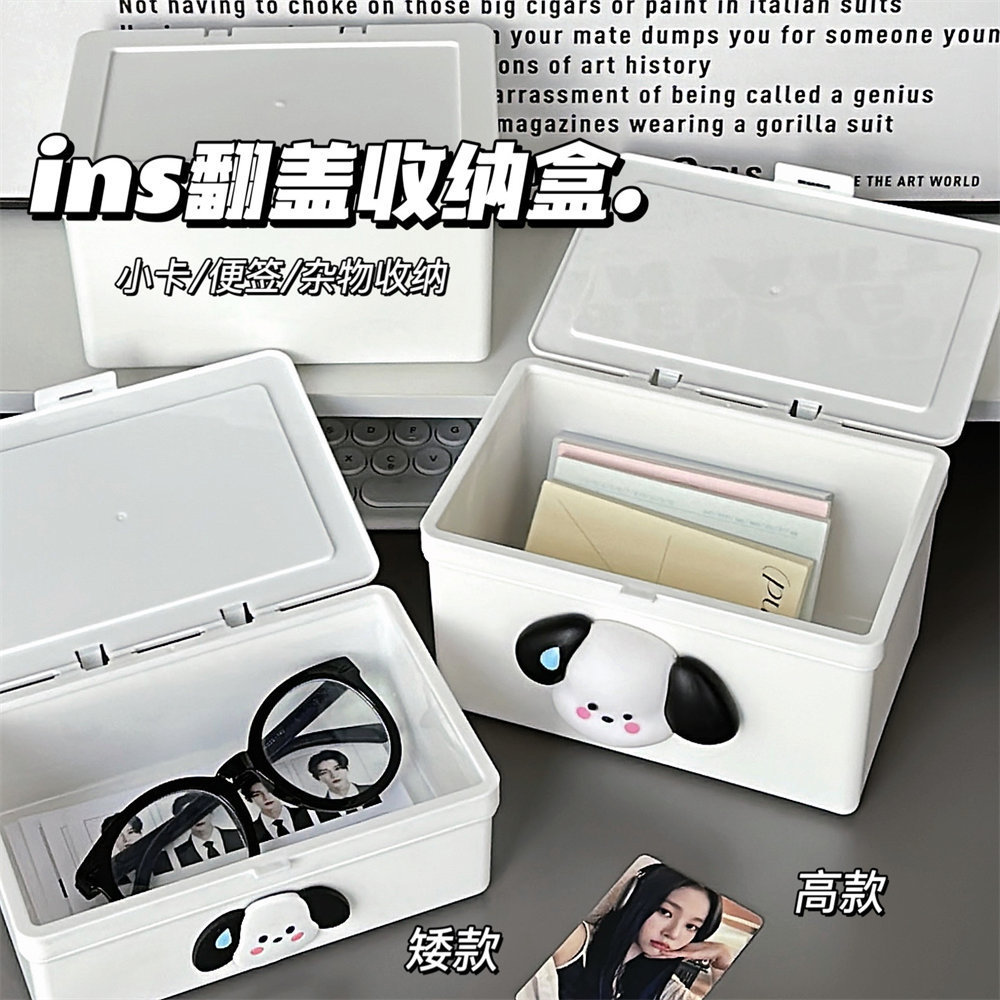 새로운 in 스타일 화이트 플립 스토리지 박스 카드 손 계정 재료 방진 스토리지 데스크탑 문구 마무리 상자