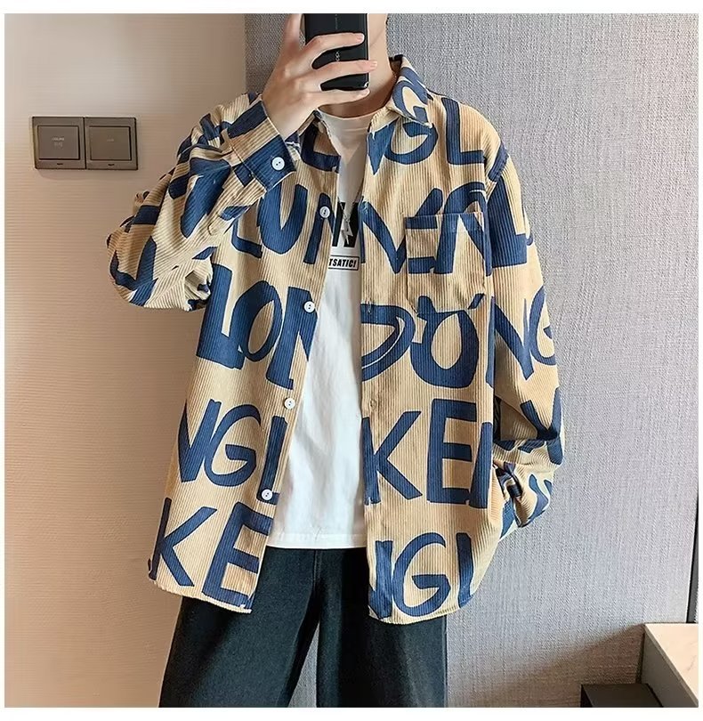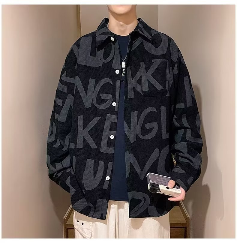 셔츠 남성 봄과 가을 새로운 캐주얼 패션 브랜드 느슨한 Pu 잘 생긴 셔츠 코트 미국 복고풍 탑스토어 가기