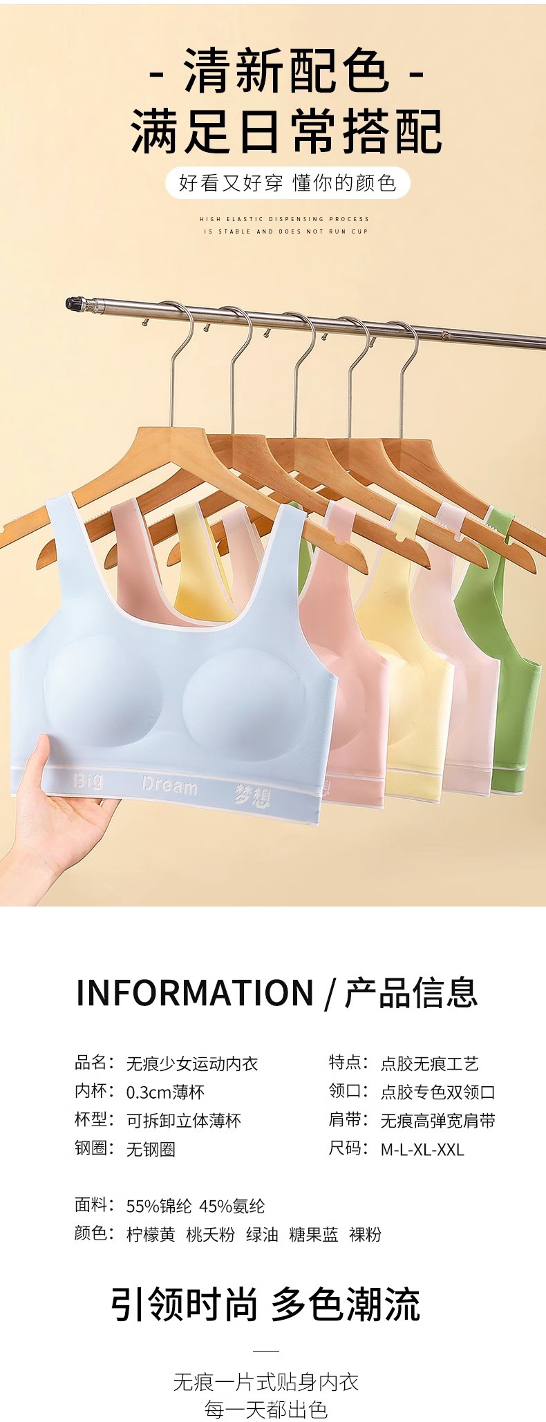 여아 속옷, 중학생 및 고등학생, 청소년 발달기, 13세 브라, 여아 스포츠 충격 방지 조끼, 통기성 및 편안함