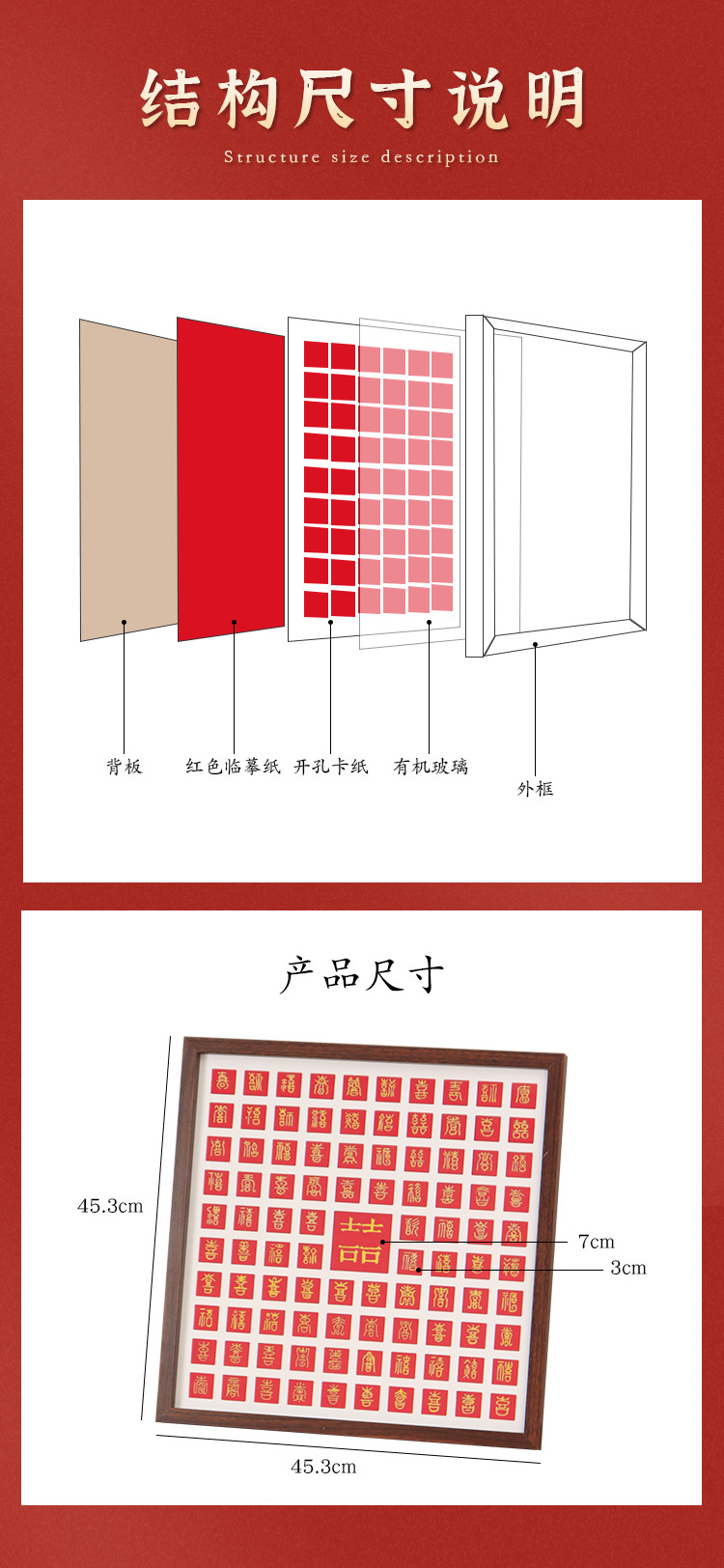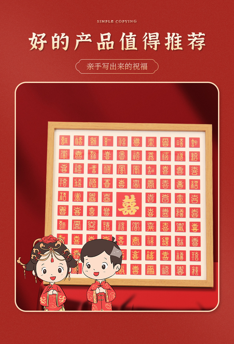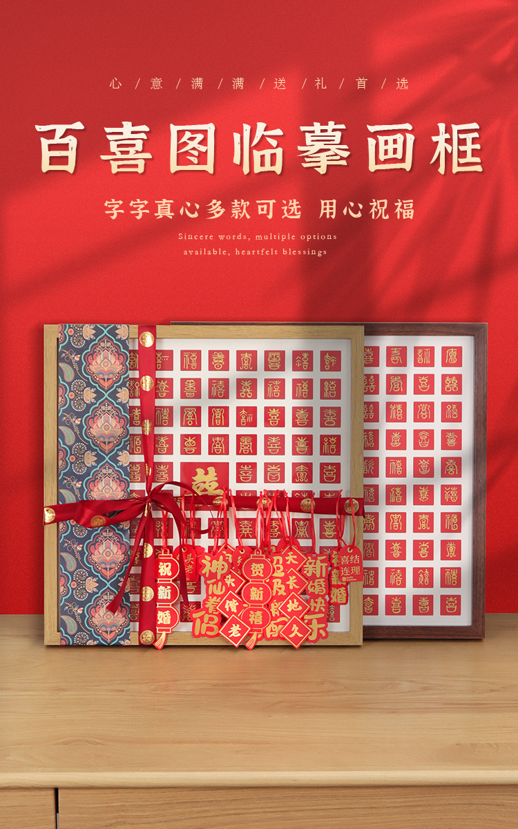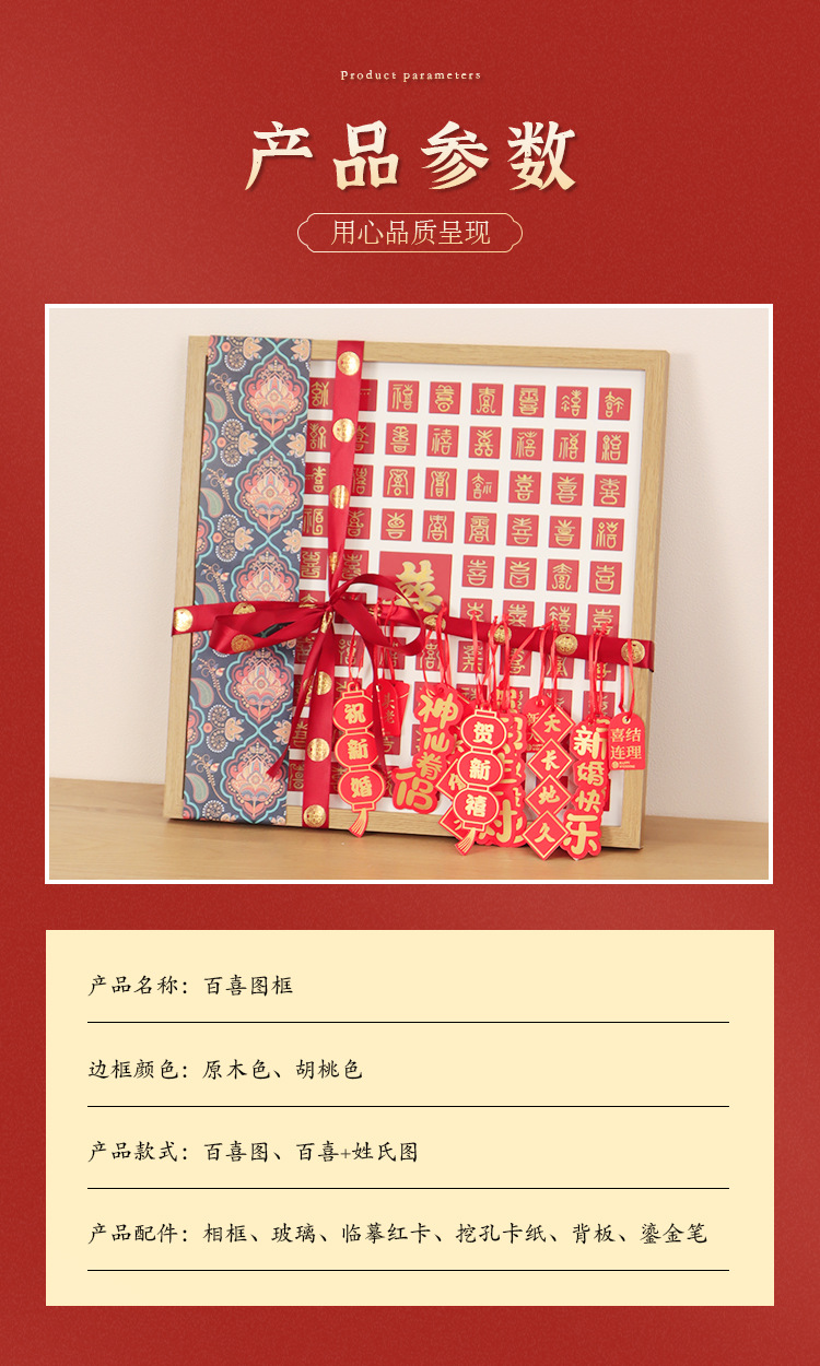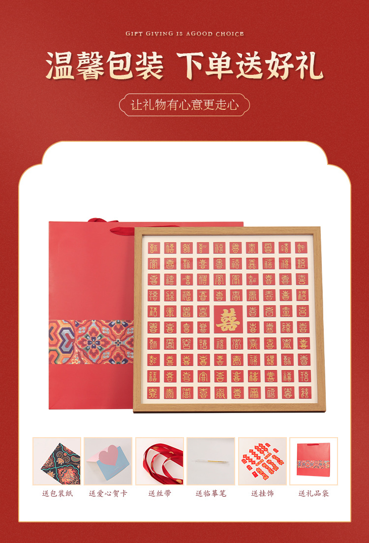• 원시 나무 색상 큰 Xi baixi 그림 (사진 프레임 + 2 빨간 종이 + 2 골드 펜 + 선물 가방)