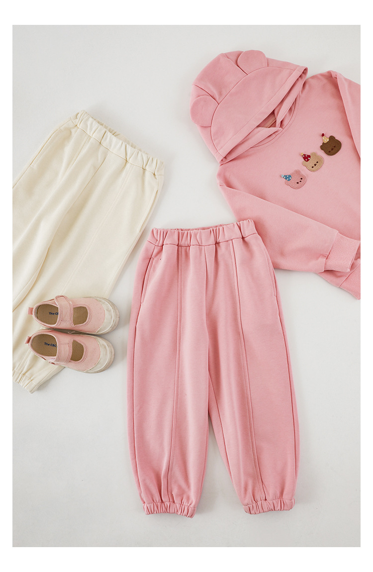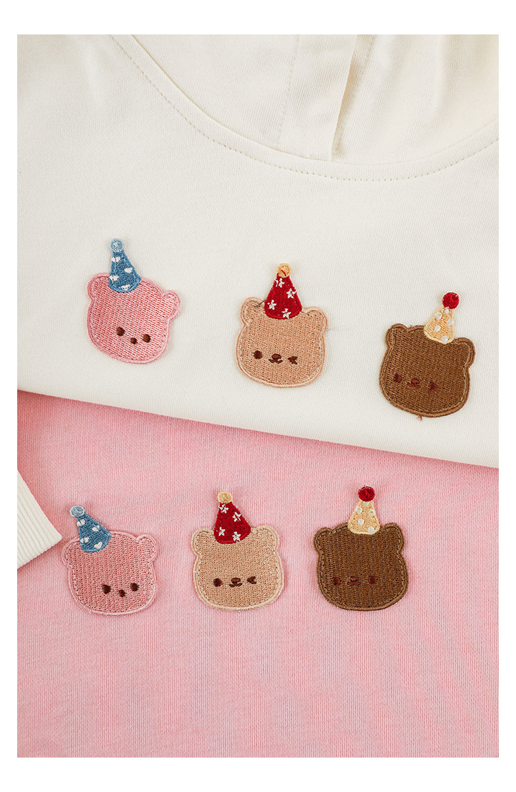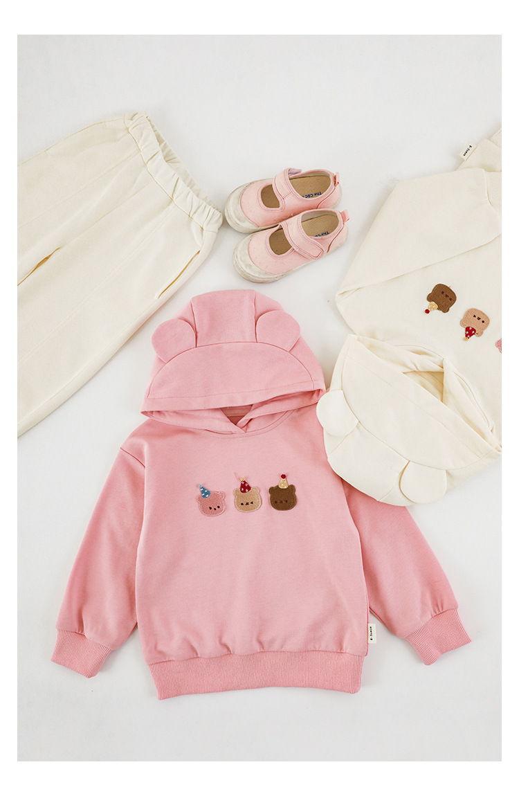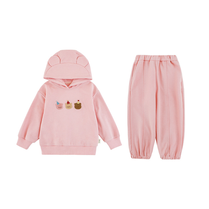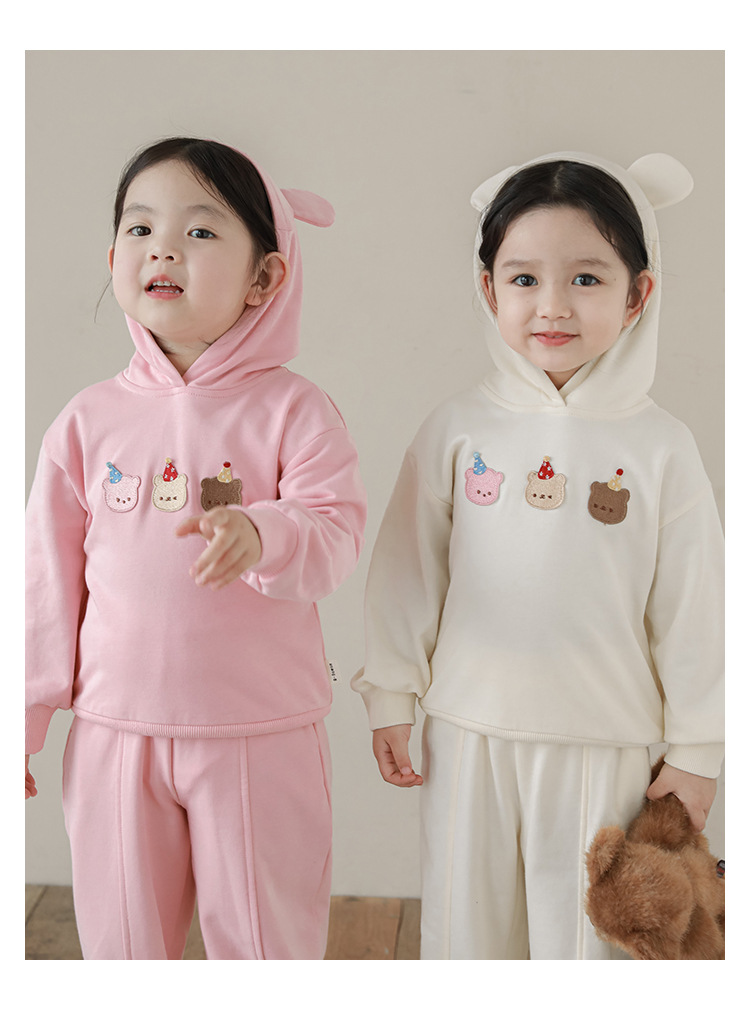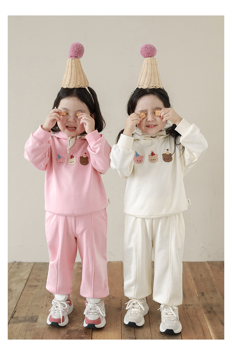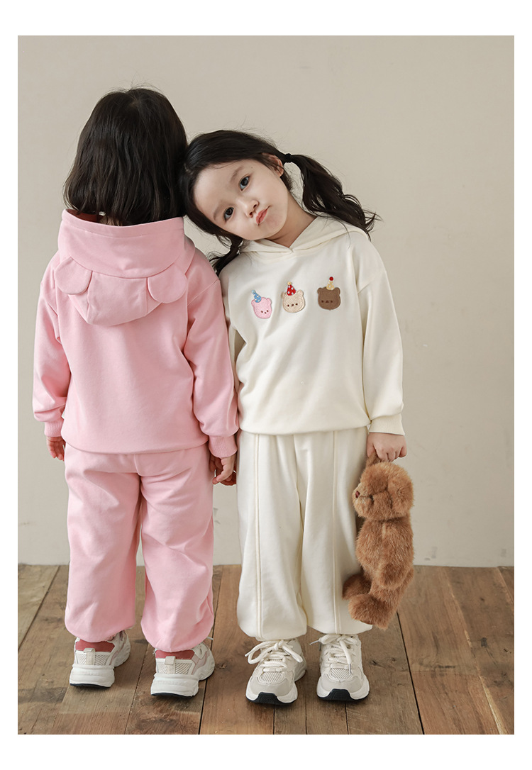 Qiu Duomeng 소녀 곰 수 놓은 세트 2025 봄과 가을 새로운 어린이 만화 후드 착용 바지 투피스 세트